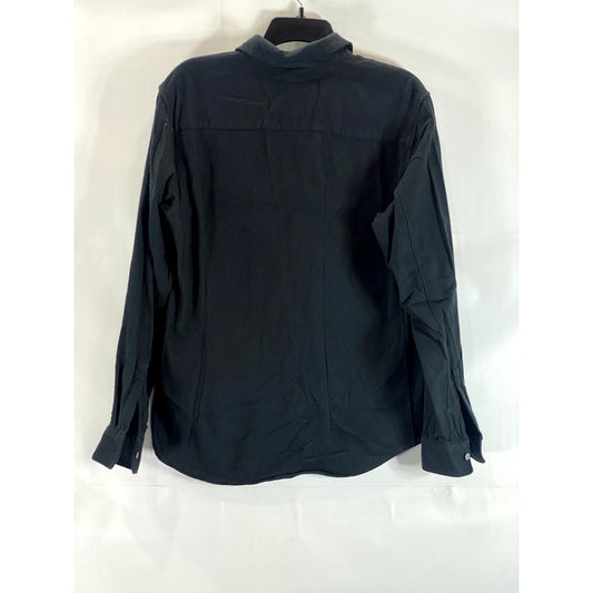LANDS' END Men's Black Solid Crewneck Fleece Long Sleeve T-Shirt SZ M -