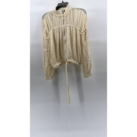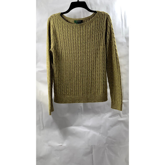 MADEWELL Women's Green-White Striped Crewneck Long Sleeve Knit Sleep Top SZ M -