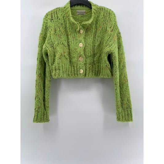 ORBACH'S Women's Green Vintage Open-Knit Button-Up Wool-Mohair Cardigan SZ S -