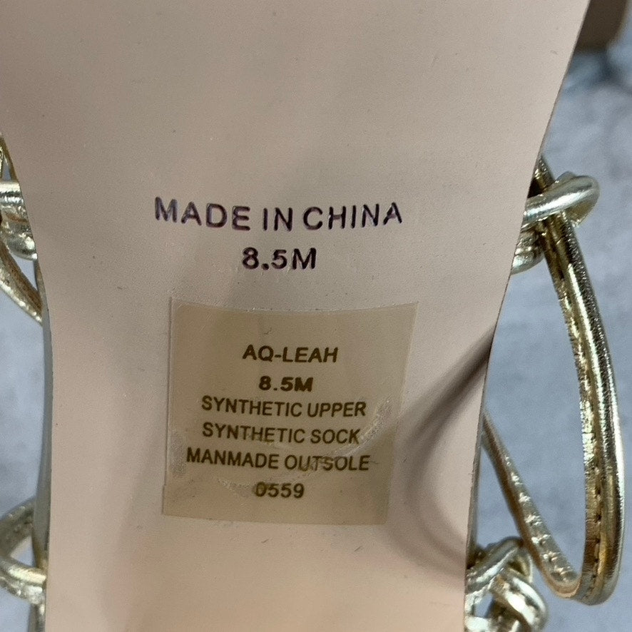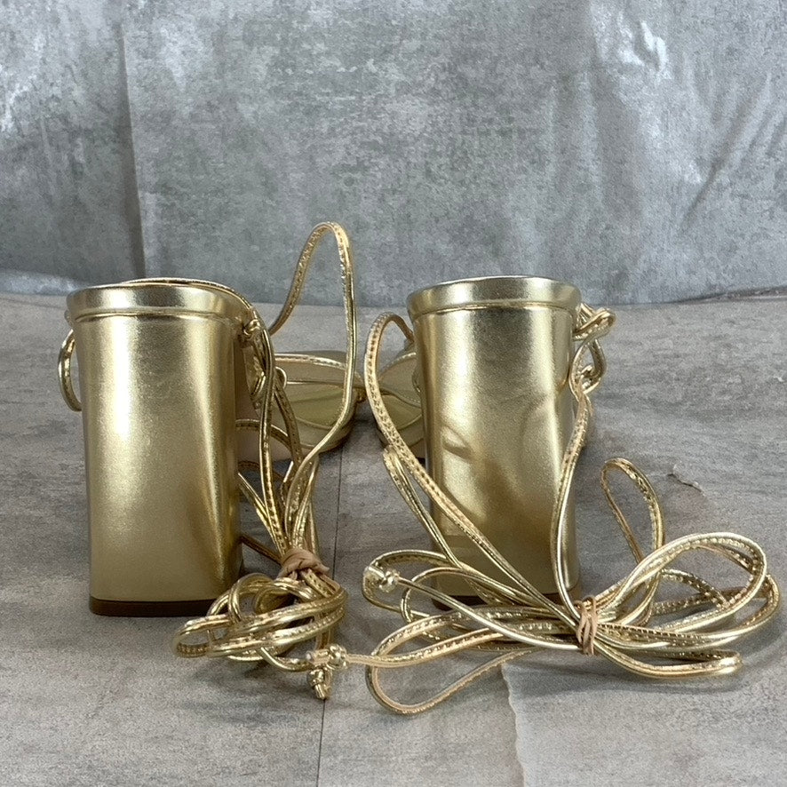 AQUA Women's Gold Metallic Leah Ankle Tie Square-Toe Block-Heel Sandals SZ 8.5