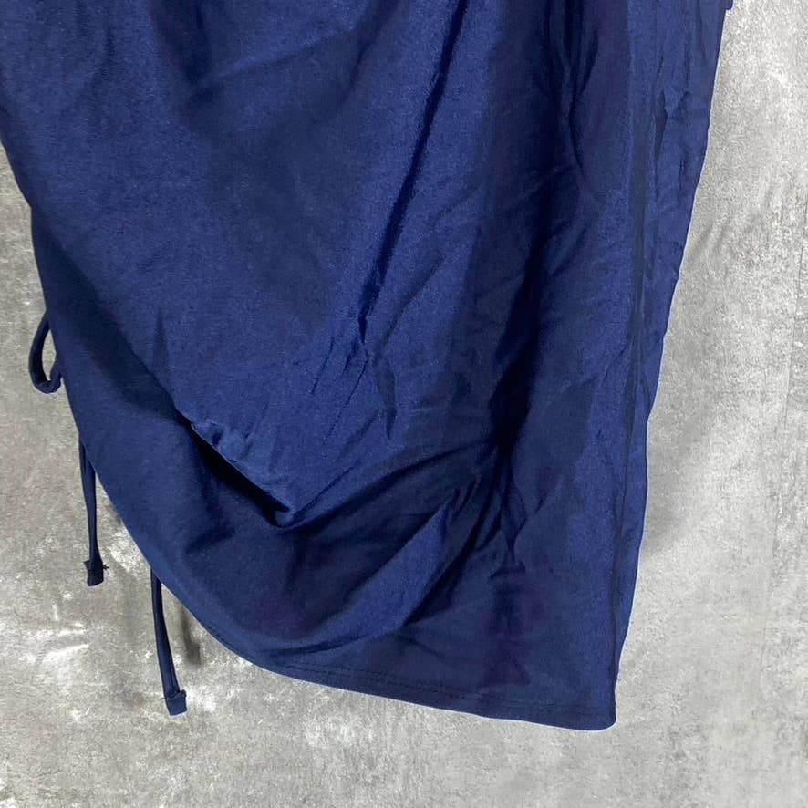 B. DARLIN Navy Bungee-Strap Square-Neck Cutout-Side Ruched Bodycon Dress SZ M