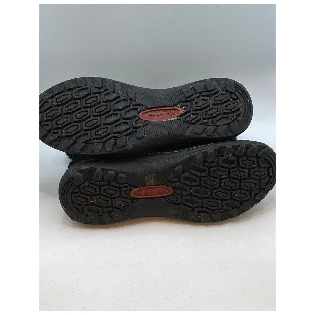 BARETRAPS Women's Black Leather Faux-Fur Round-Toe Ankle Winter Boots SZ 7