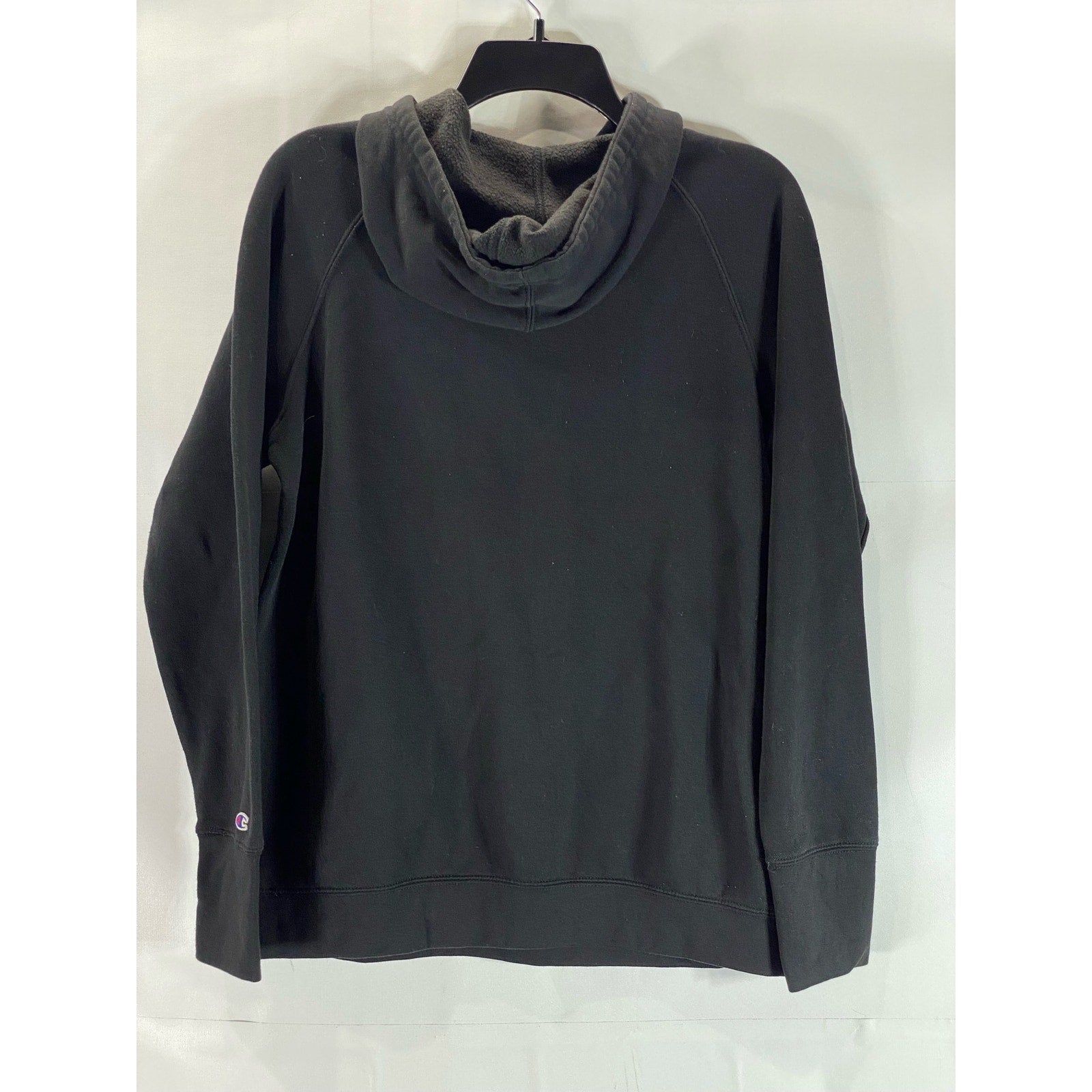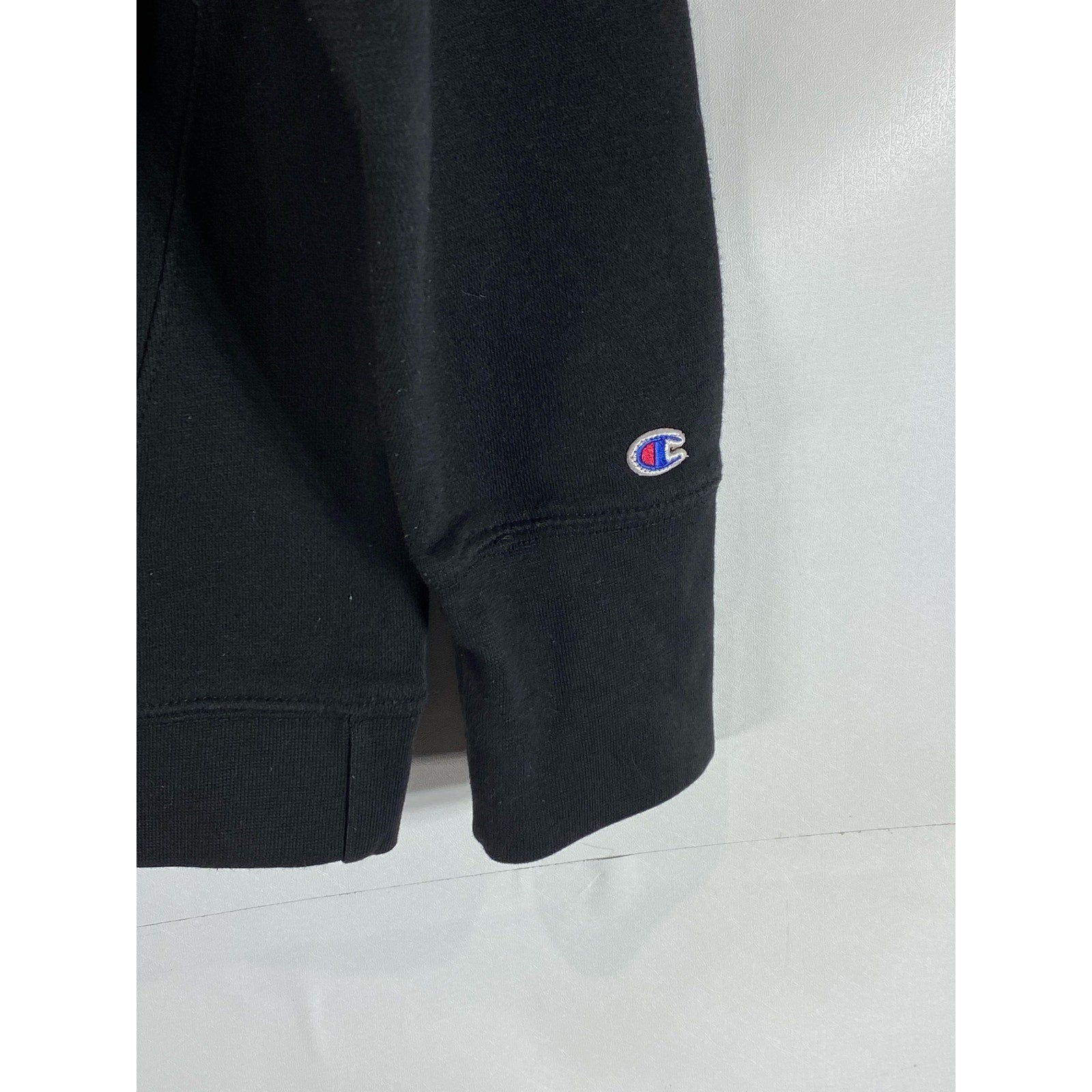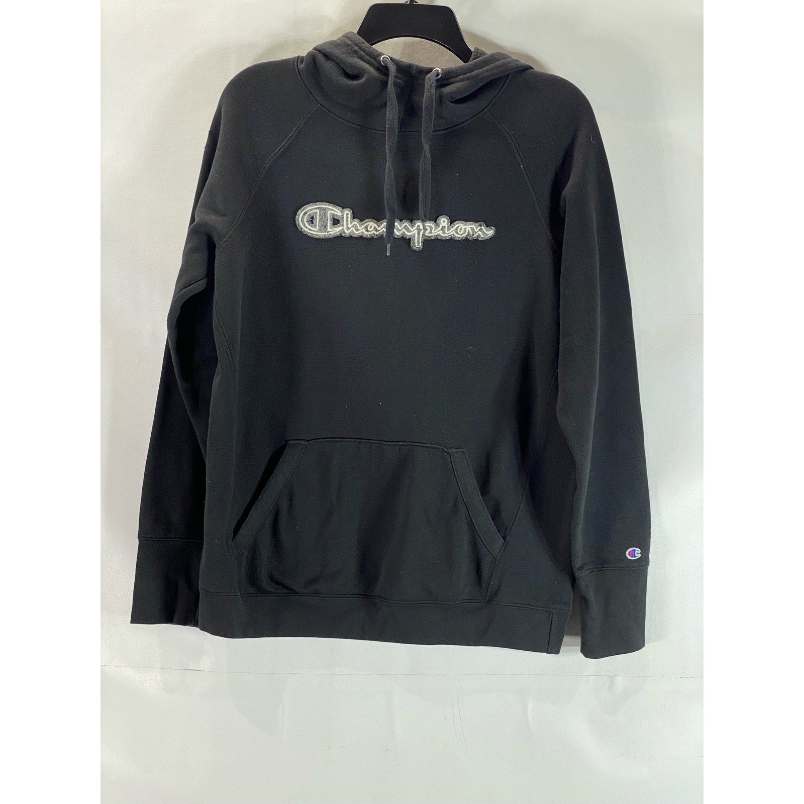 CHAMPION Men's Black Script Logo Patch Regular-Fit Pullover Hoodie SZ M