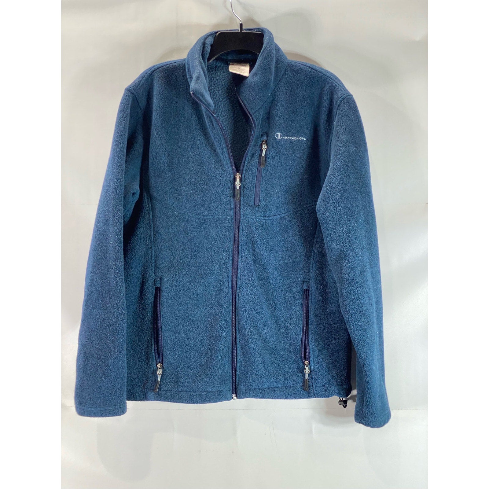 CHAMPION Men's Blue Fleece Script Logo Stand-Collar Zip-Up Jacket SZ S