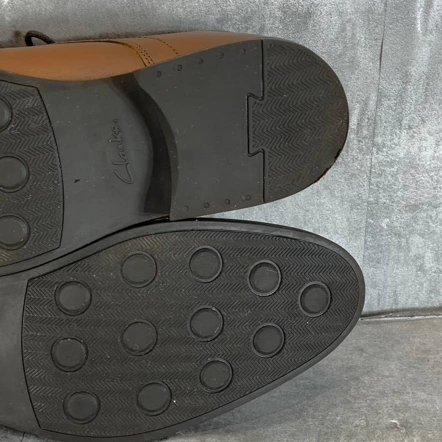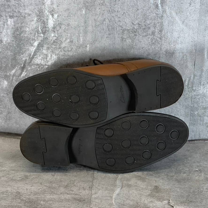 CLARKS Collection Men's Dark Tan Leather Whiddon Lace-Up Cap-Toe Oxfords SZ 10