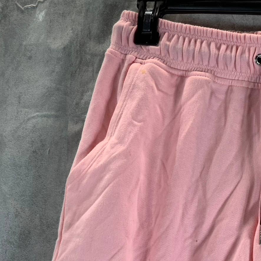 DKNY SPORT Women's Orchid Drawstring Metallic Logo Raw-Hem Pull-On Shorts SZ S