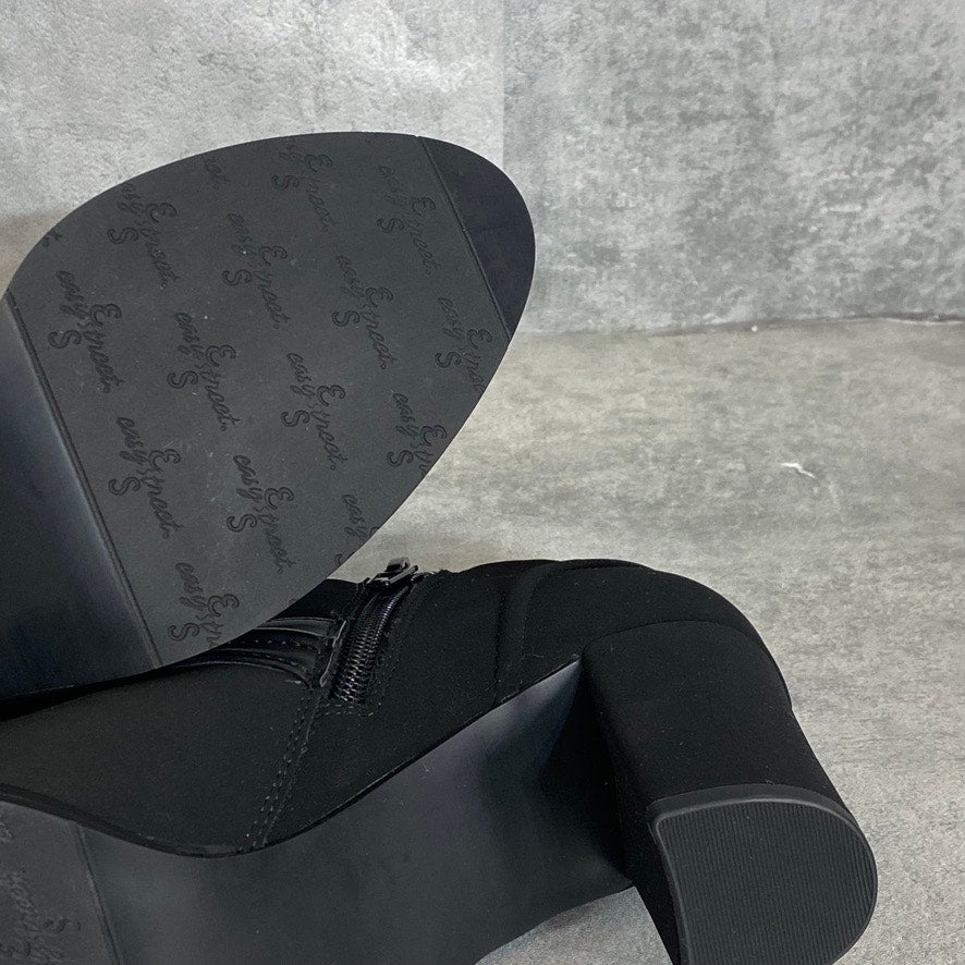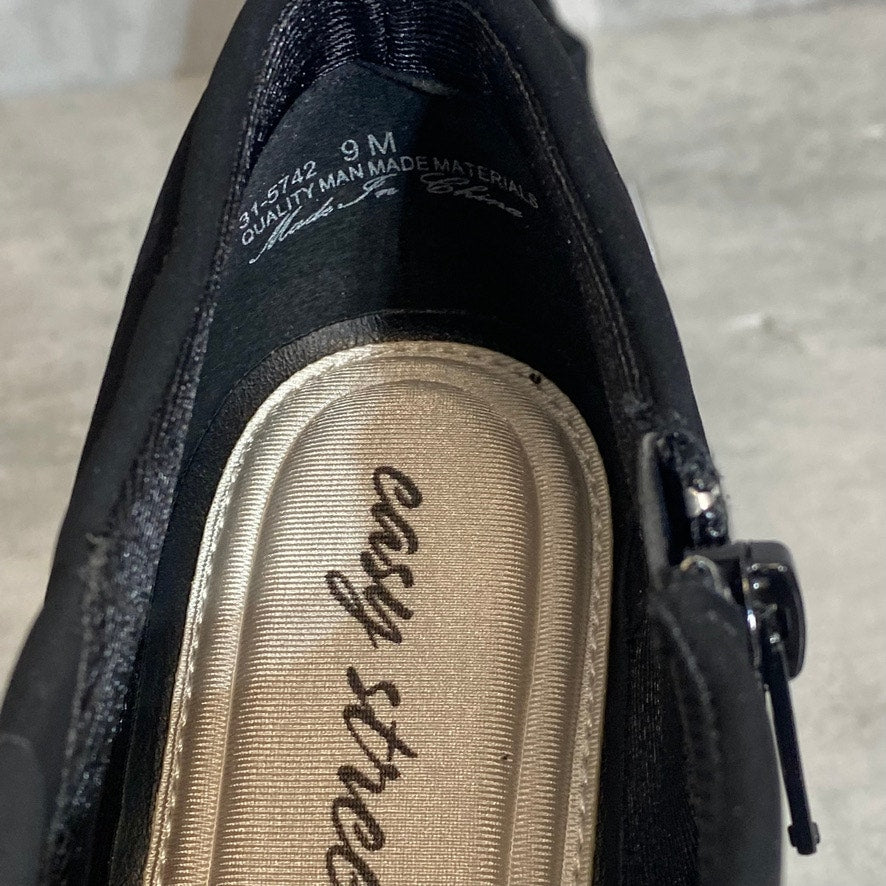EASY STREET Black Suede Berit Almond-Toe Slip-On Block Heel Booties SZ 9