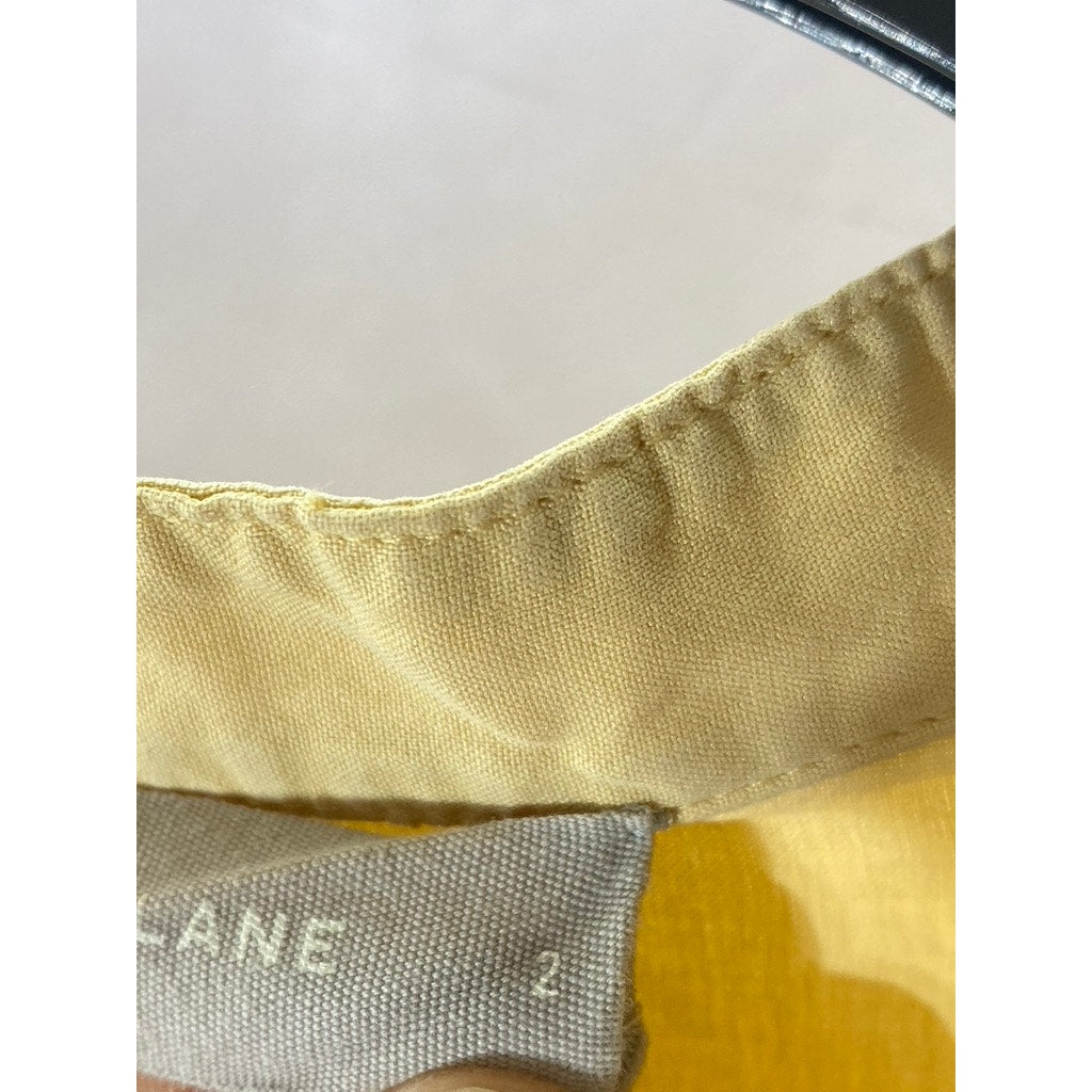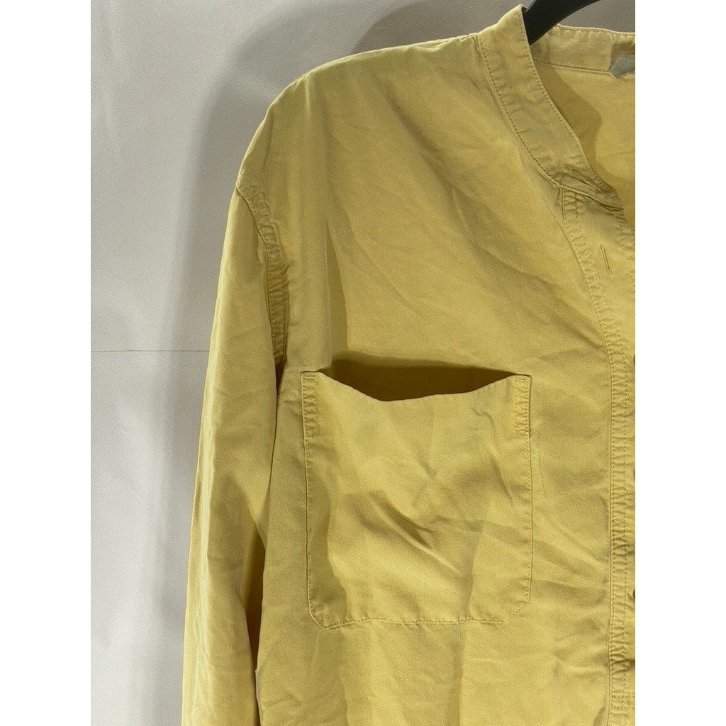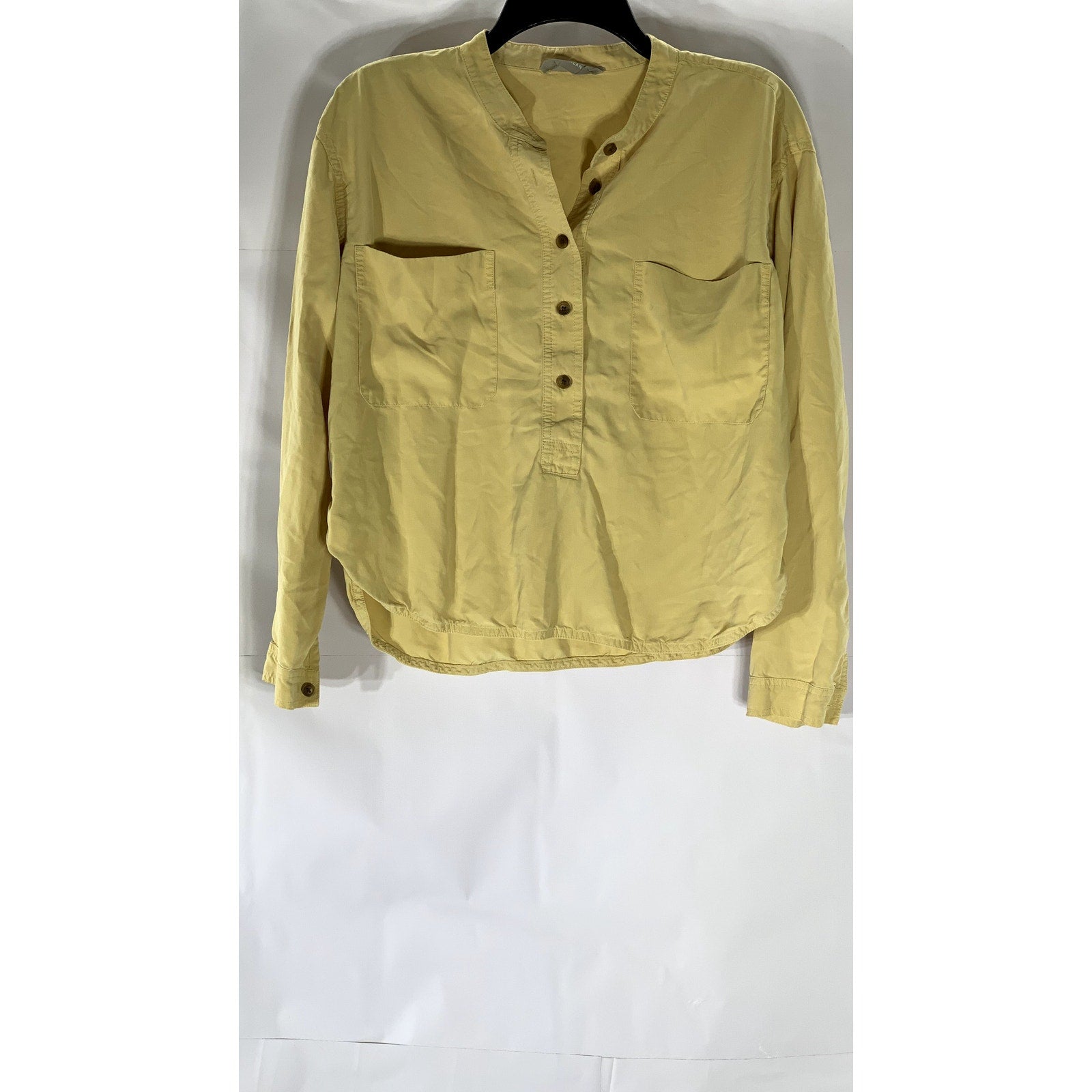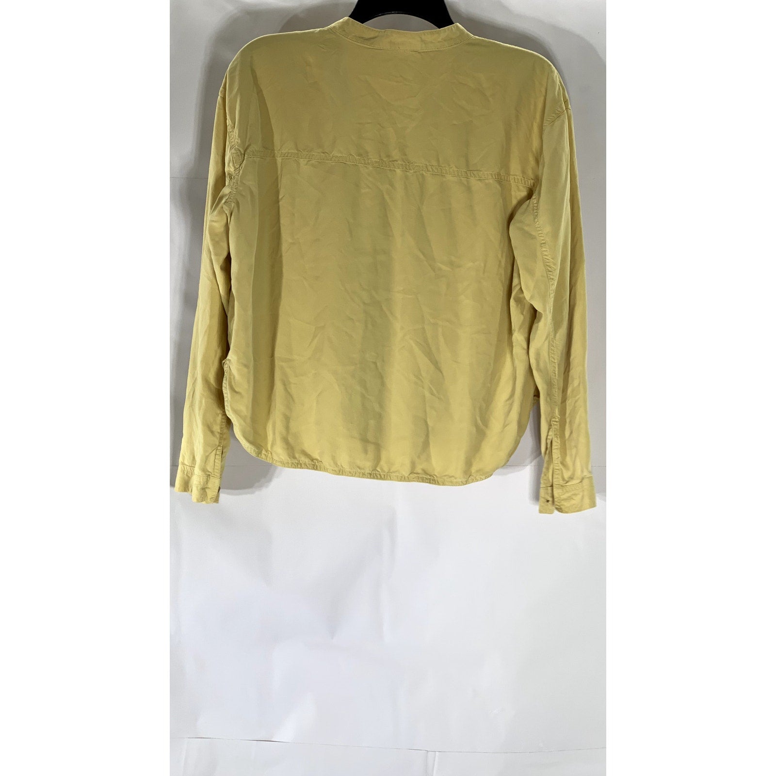 EVERLANE Women's Yellow Washable Silk Long Sleeve Henley Patch Pocket Top SZ 2