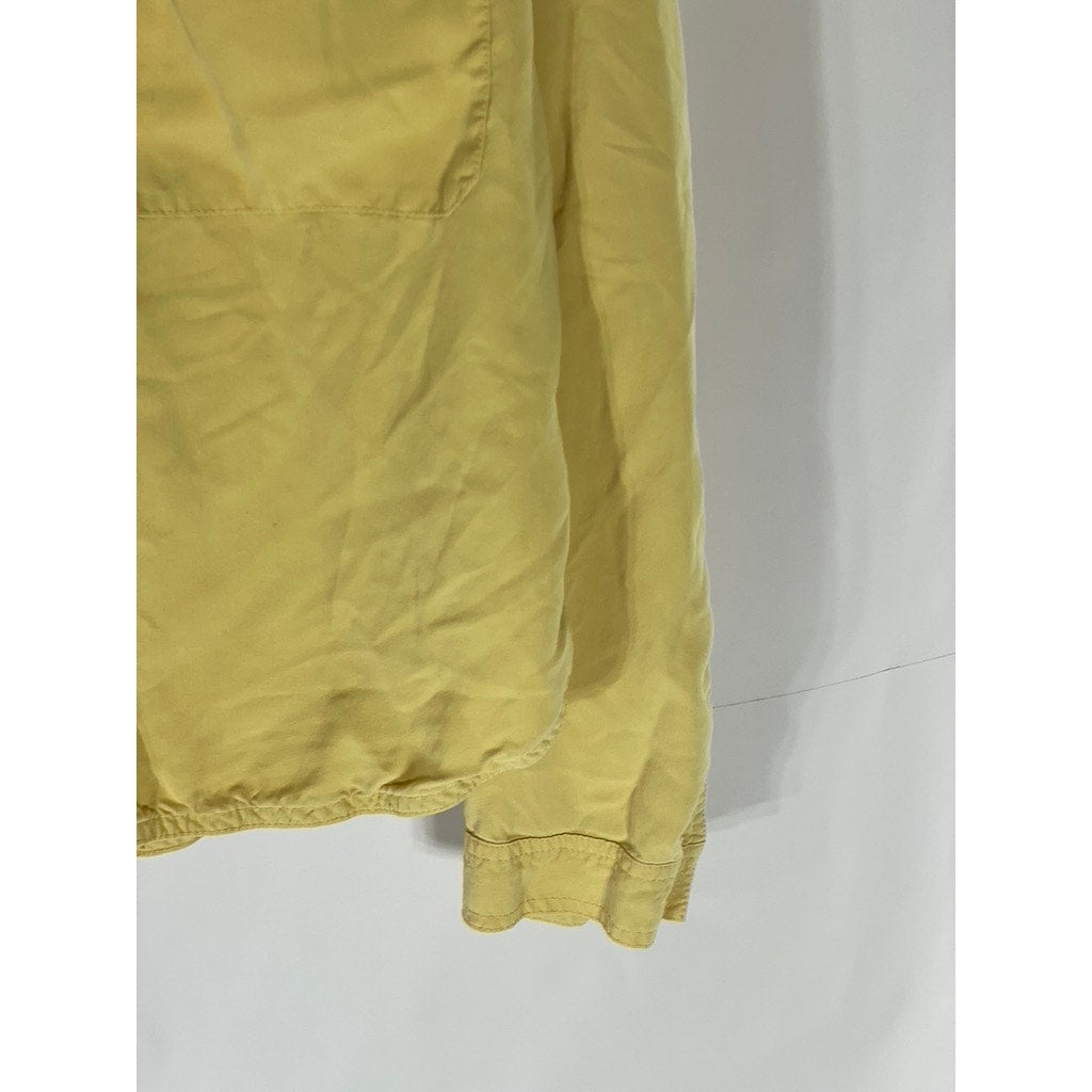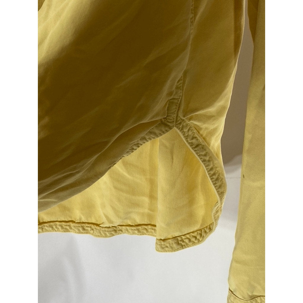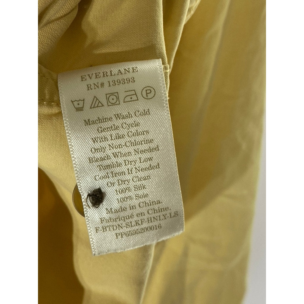 EVERLANE Women's Yellow Washable Silk Long Sleeve Henley Patch Chest Pocket Top SZ 2