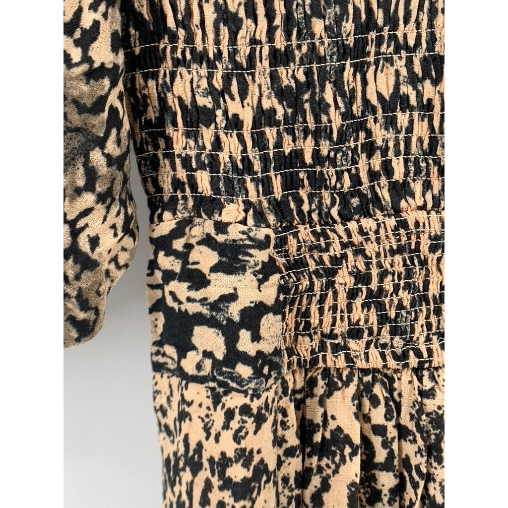 FREE PEOPLE Women's Brown Printed V-Neck Cutout Short Elbow Sleeve Casual Maxi Dress SZ XS