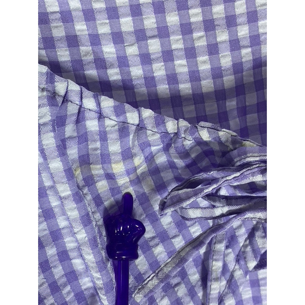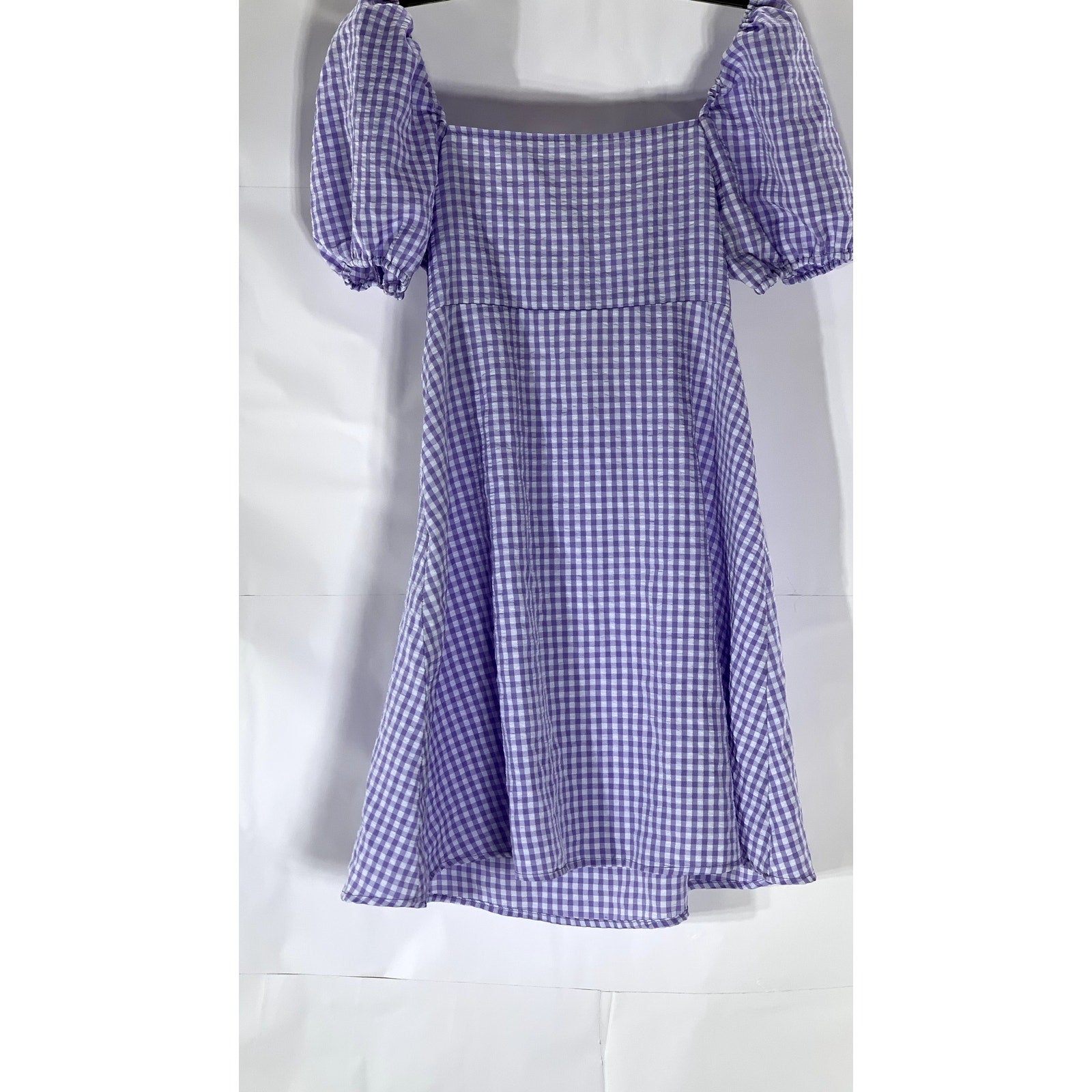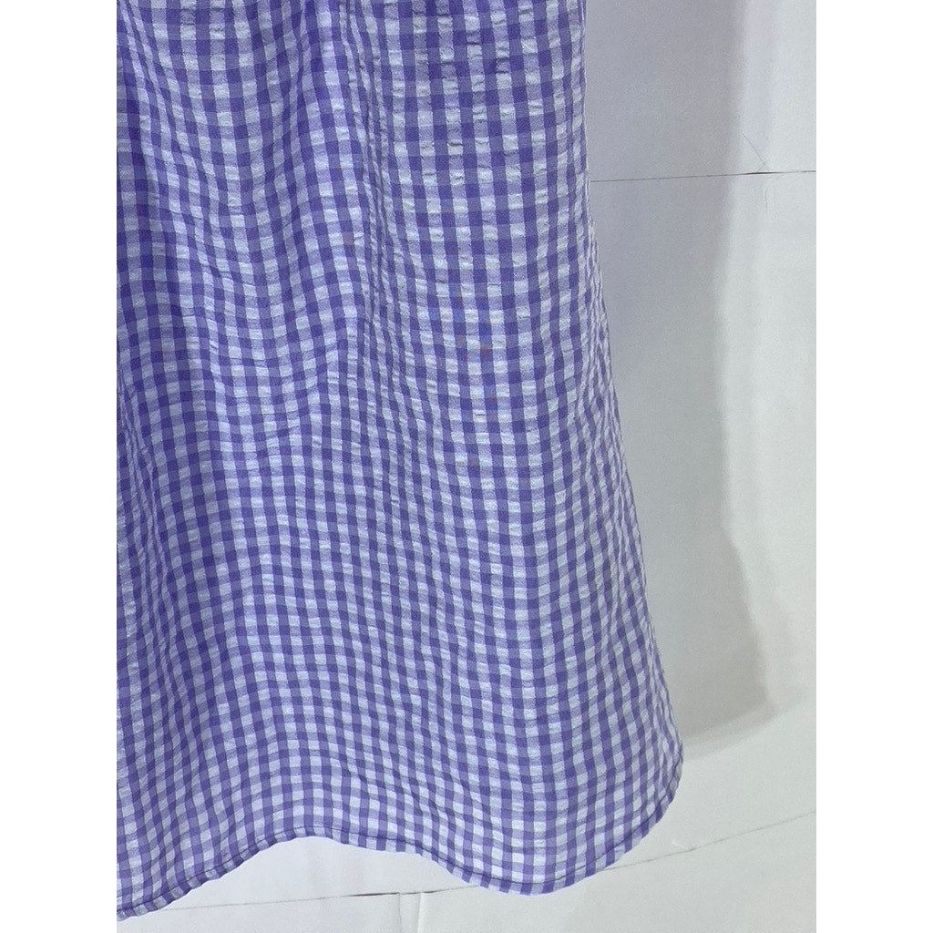 H&M Women's Purple-White Gingham Tie-Front Cutout Puff-Sleeve Mini Dress SZ XS