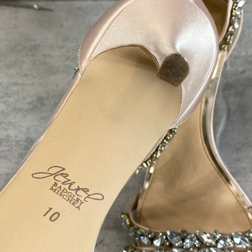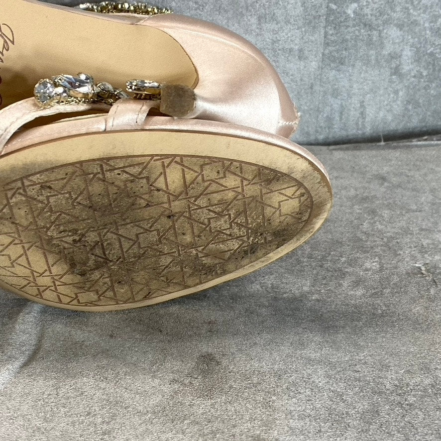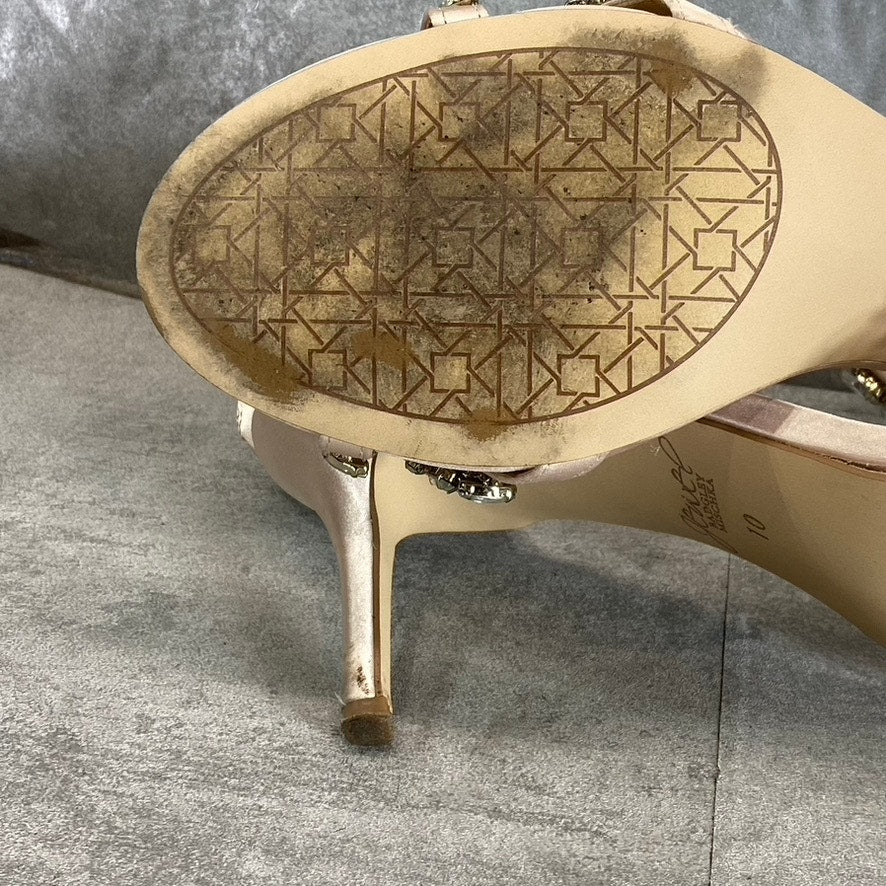 JEWEL BADGLEY MISCHKA Women's Champagne Caroline Embellished Ankle-Strap Evening Sandals SZ 10