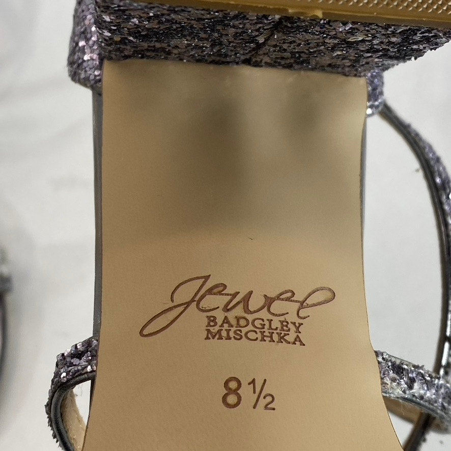 JEWEL BADGLEY MISCHKA Women's Smoke Glitter Claudia Block-Heel Sandals SZ 8.5