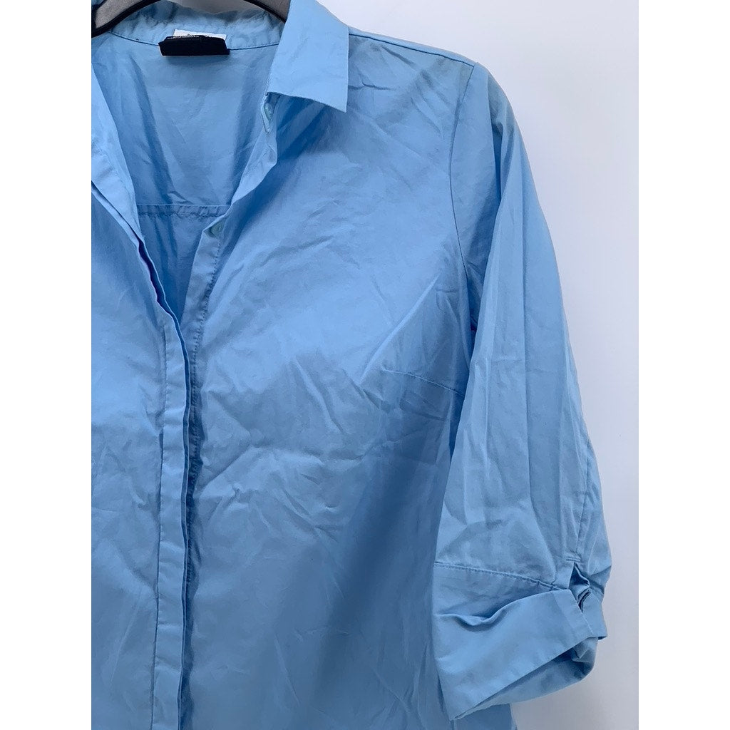 LIZ CLAIBORNE Women's Light Blue Solid Button-Up 3/4 Sleeve Stretch Top SZ S