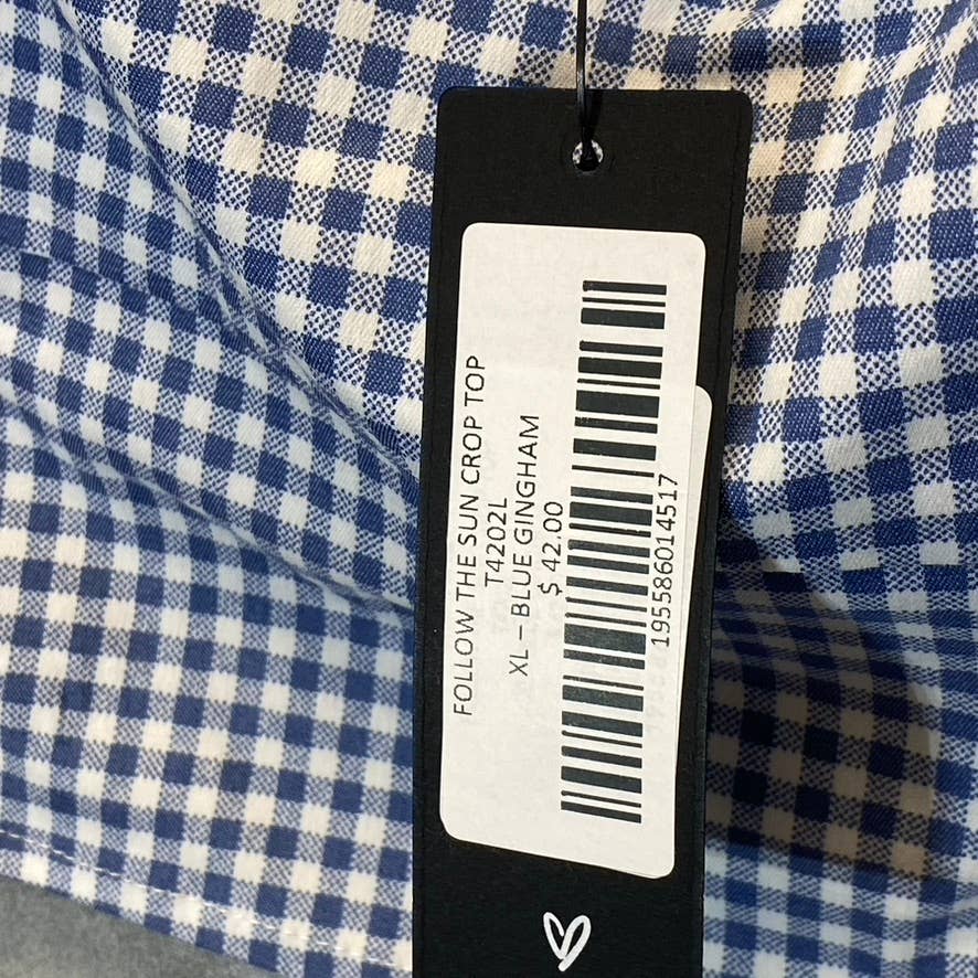 LULUS Women's Blue Gingham Follow The Sun Lightweight Sleeveless Crop Top SZ XL