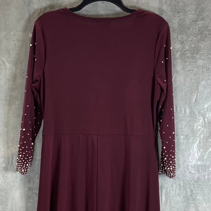 MSK Women's Burgundy V-Neck Rhinestone Embellished 3/4 Sleeve Midi Dress SZ M