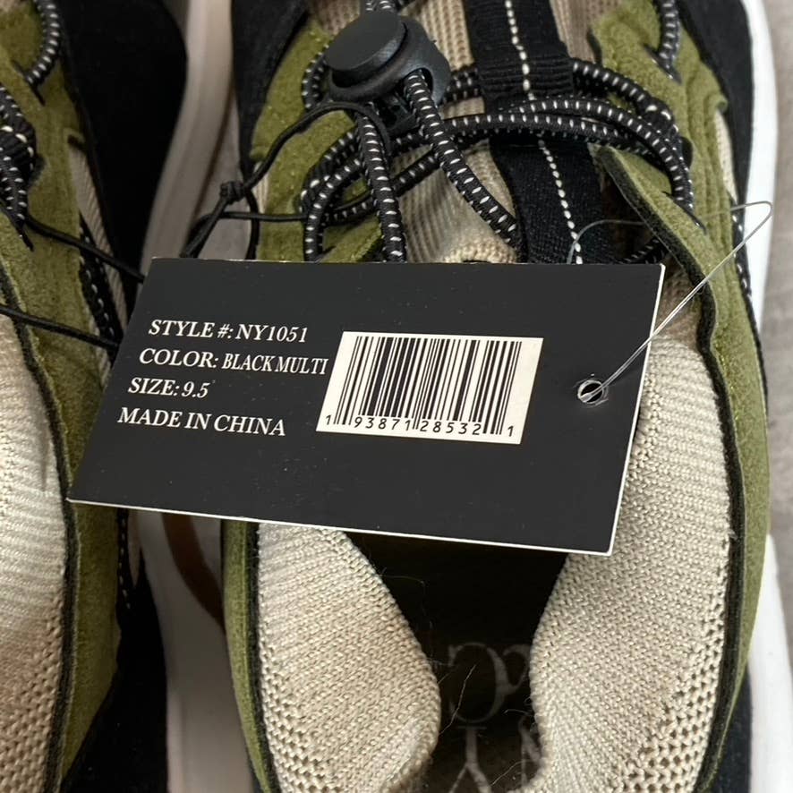 NEW YORK & COMPANY Men's Black Multi Faux-Leather Zion Bungee-Lace Sneakers SZ 9.5