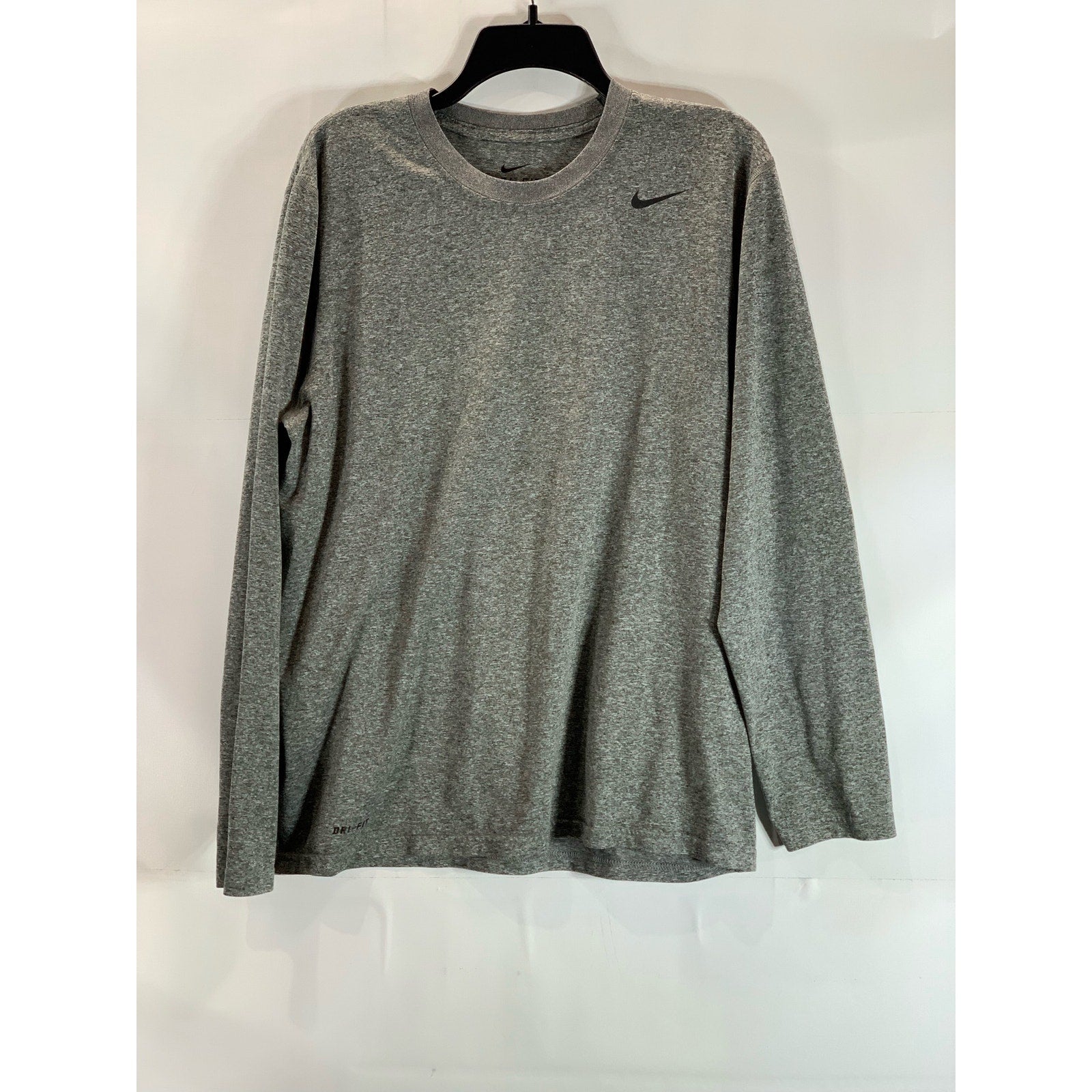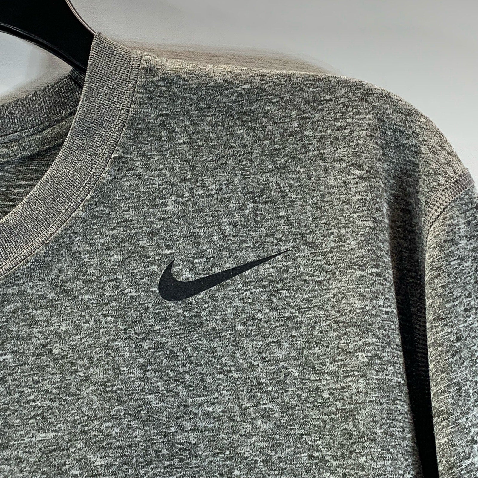 NIKE Men's Gray Swoosh logo Crewneck Dri-Fit Long Sleeve T-Shirt SZ L