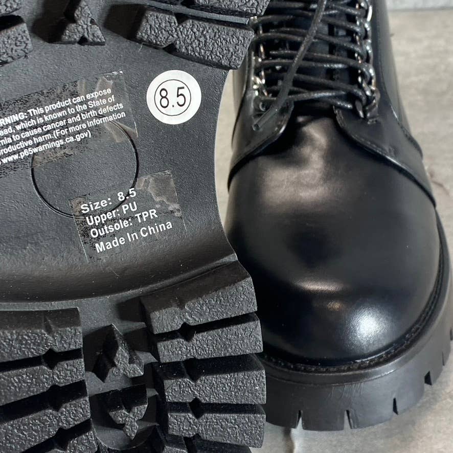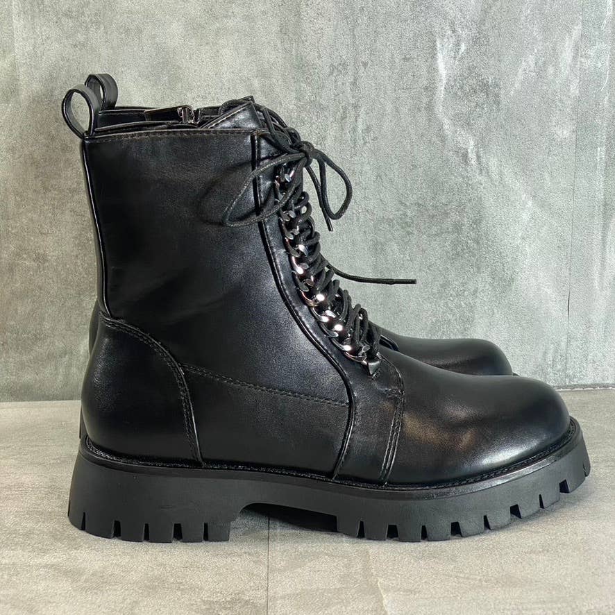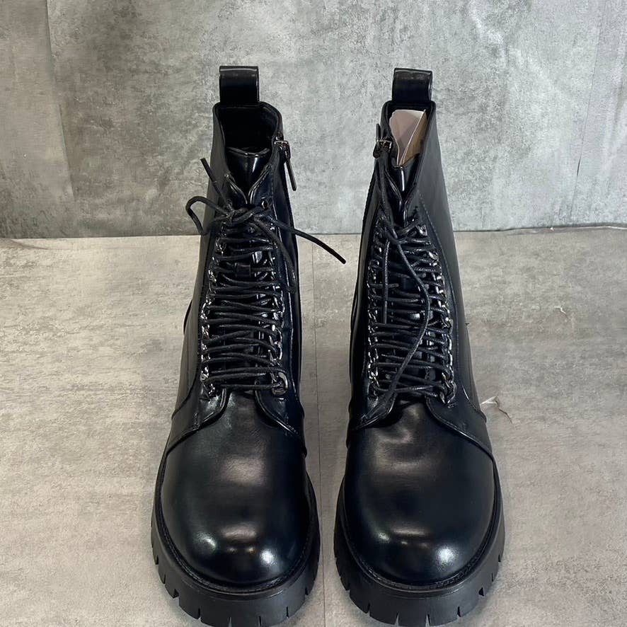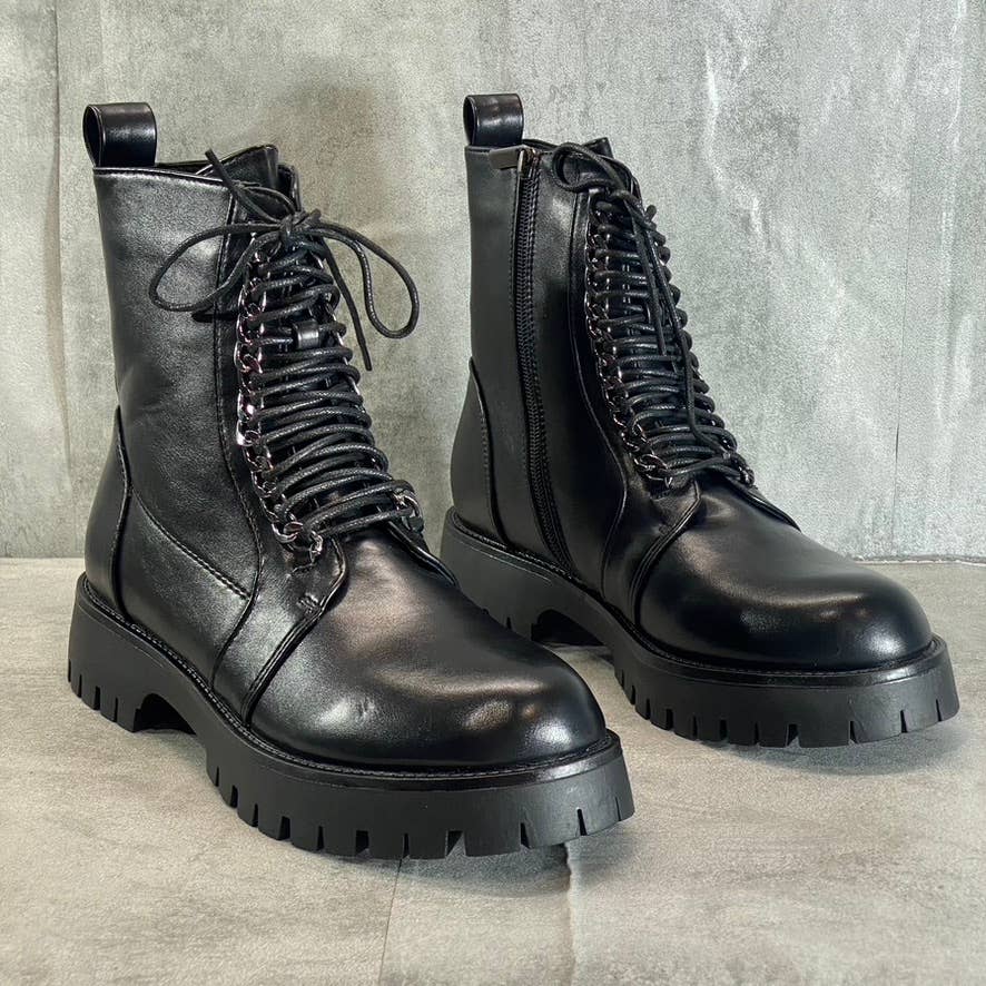 OLIVIA MILLER Women's Black Elizabeth Chain Lace-Up Combat Boots SZ 8.5