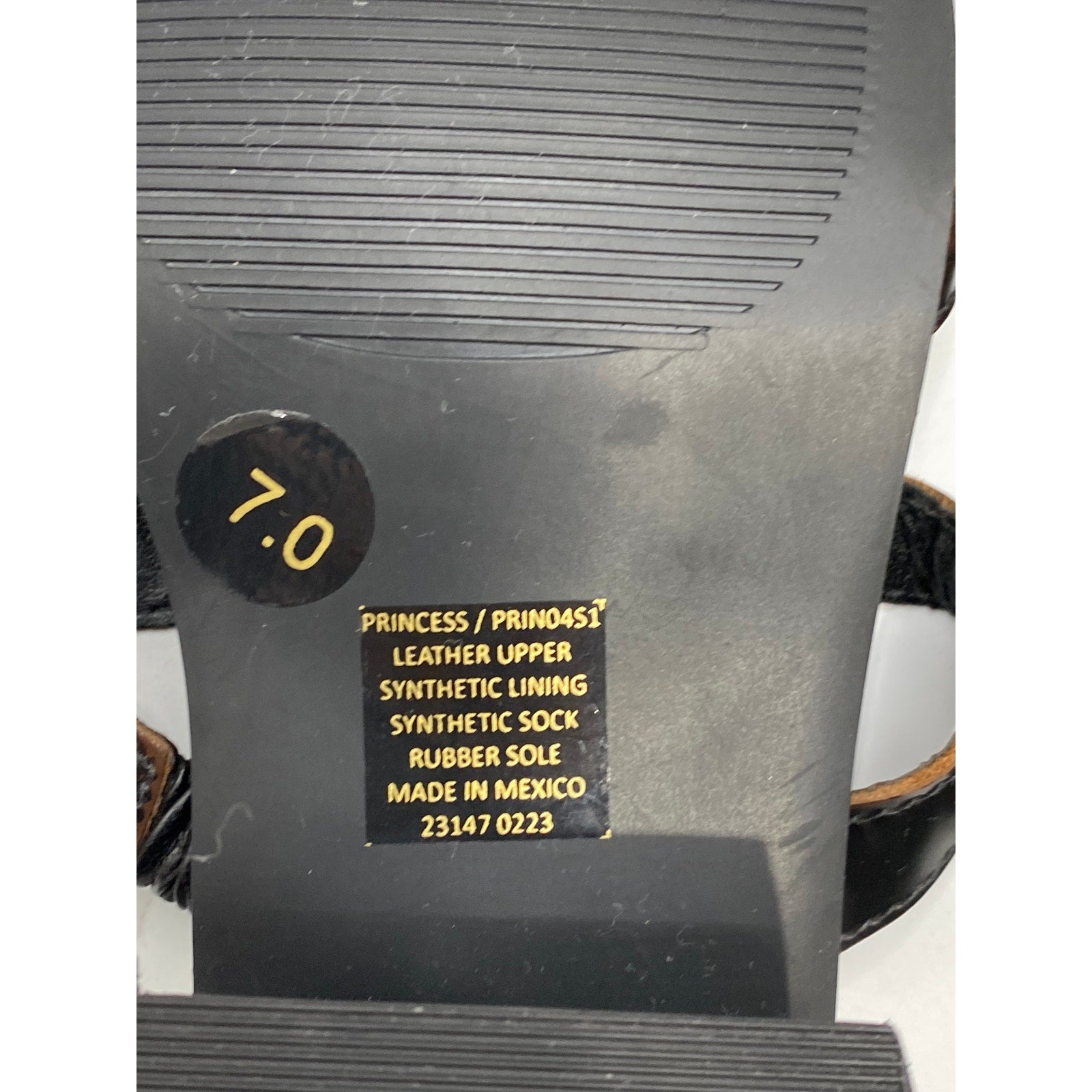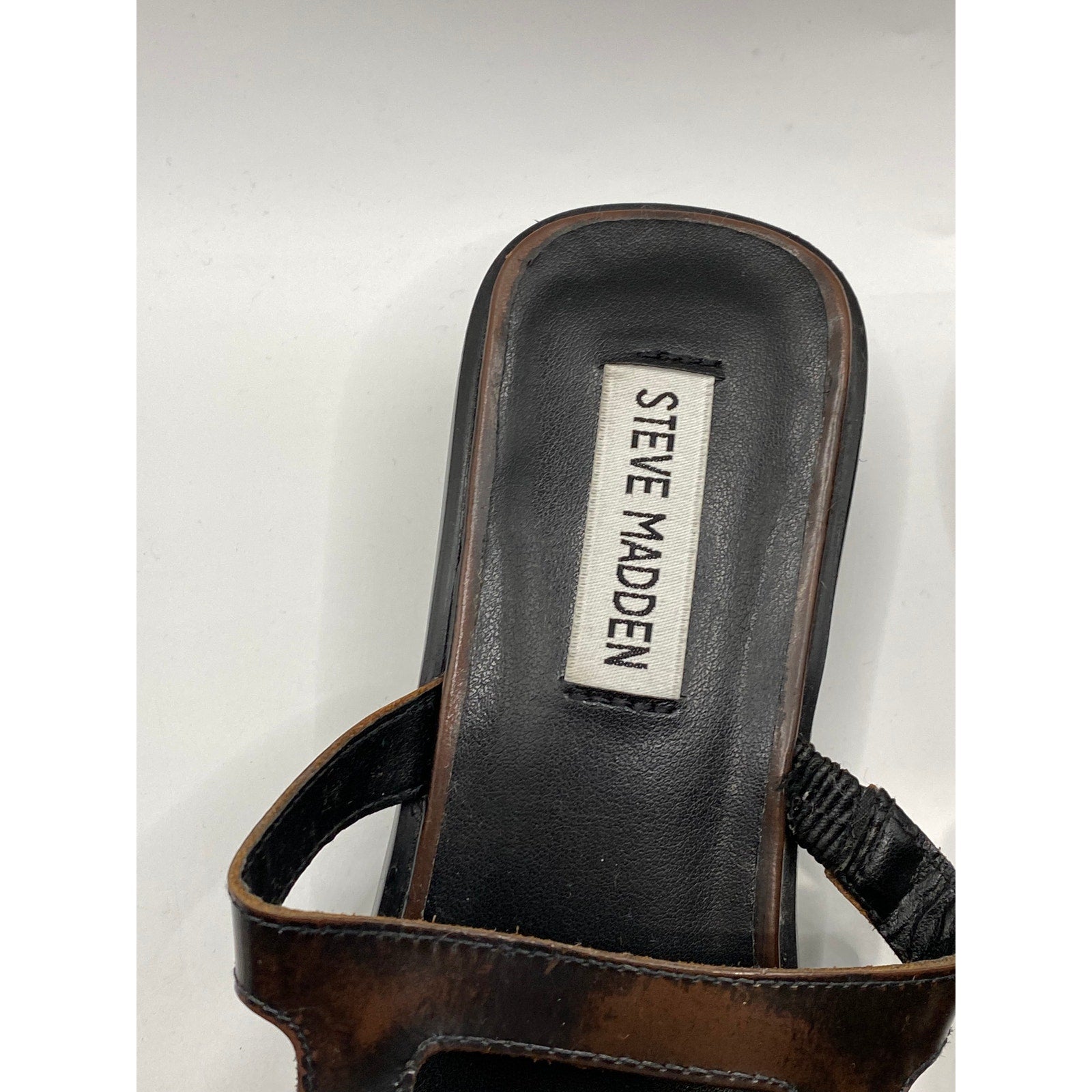 STEVE MADDEN Women's Brown Leather Square-Toe Block-Heel Slide Sandals SZ 7