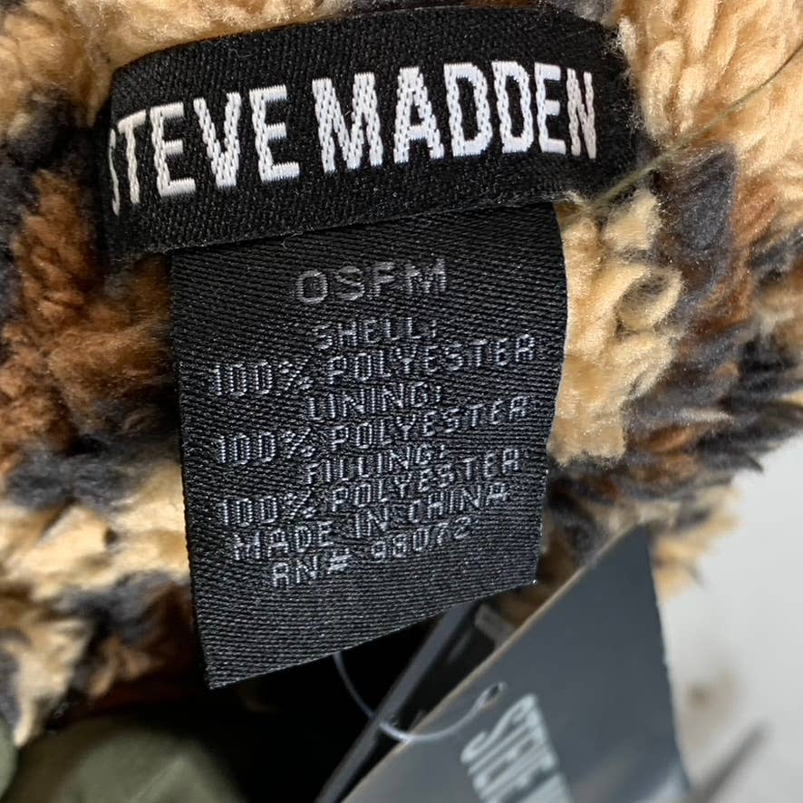 STEVE MADDEN Women's Green/Animal-Print Fleece Pocket Puffer Scarf SZ OS