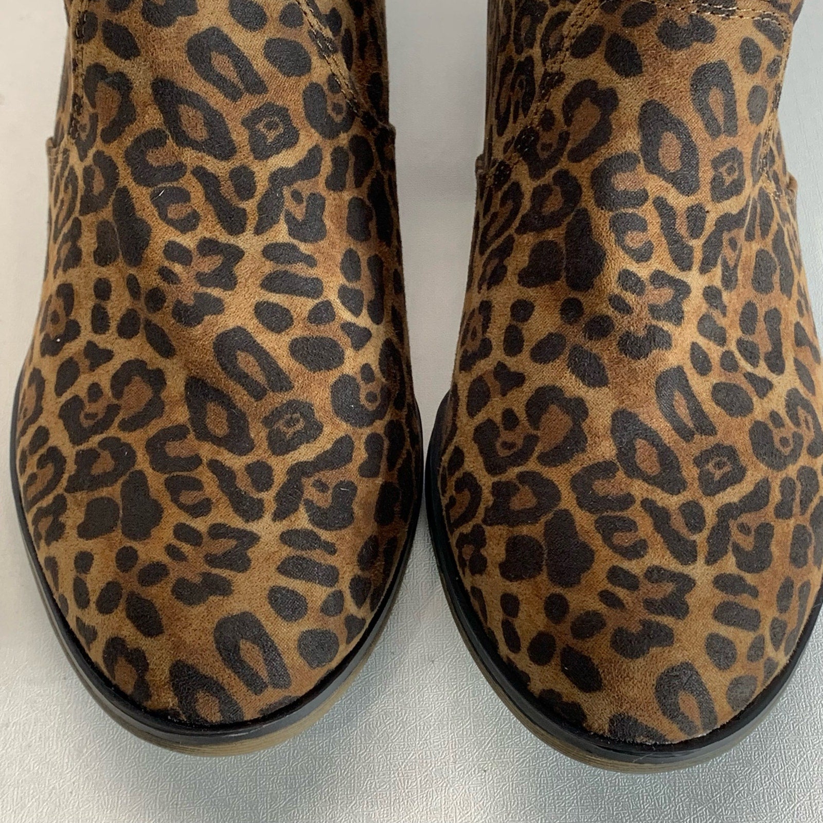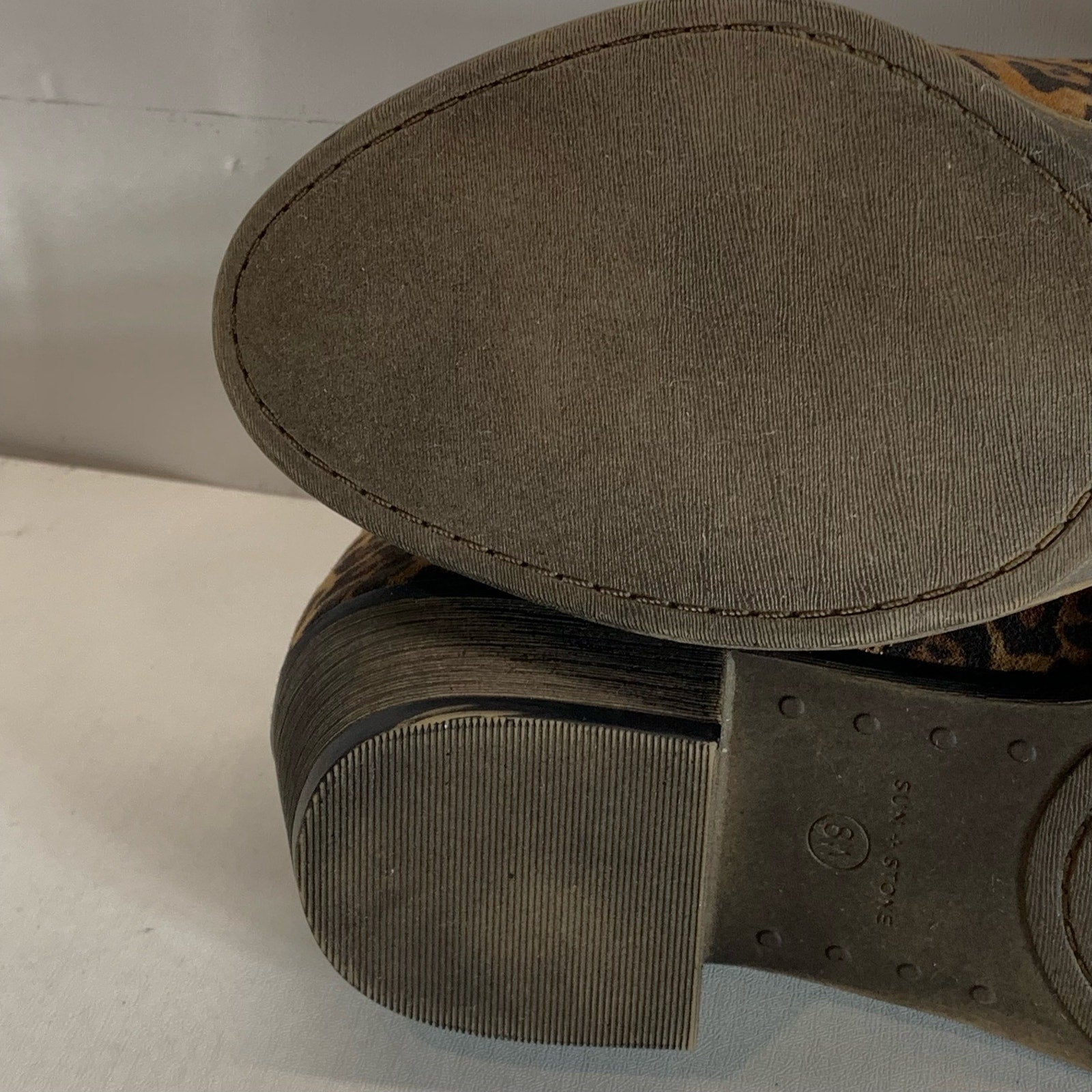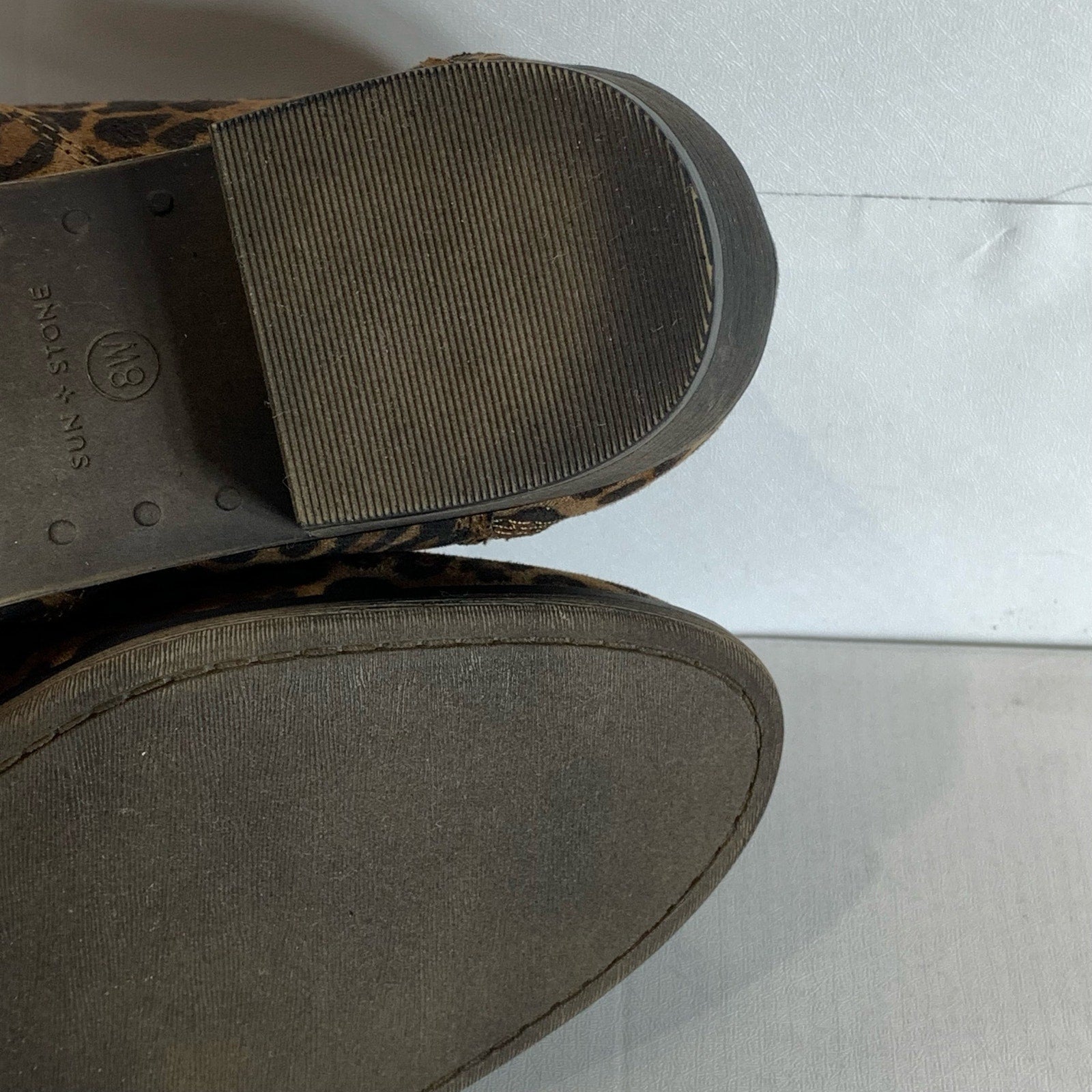 SUN+STONE Women's Brown Leopard Abby Double-Zip Round-Toe Block-Heel Booties SZ 8