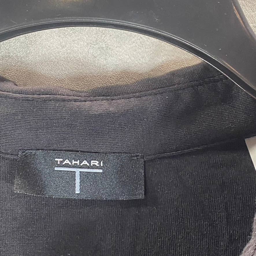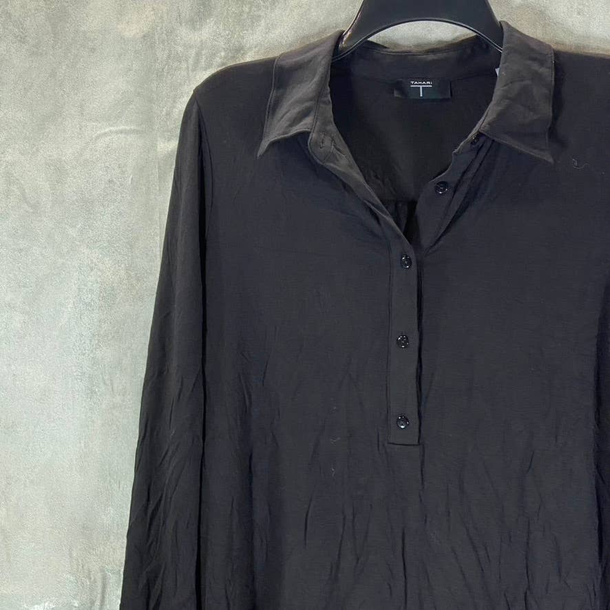 TAHARI Women's Black Sloid Collared Long-Sleeve Belted Mini Dress SZ M