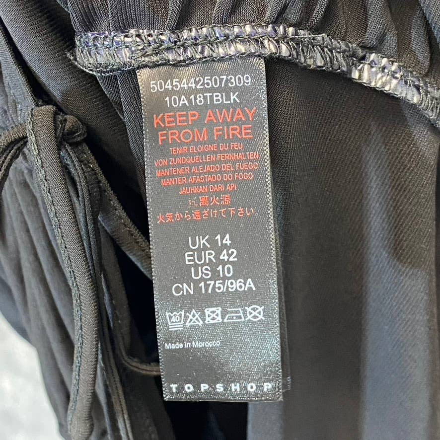 TOPSHOP Women's Solid Black V-Neck Ruched Side Slinky Long Sleeve Mini Dress SZ 10