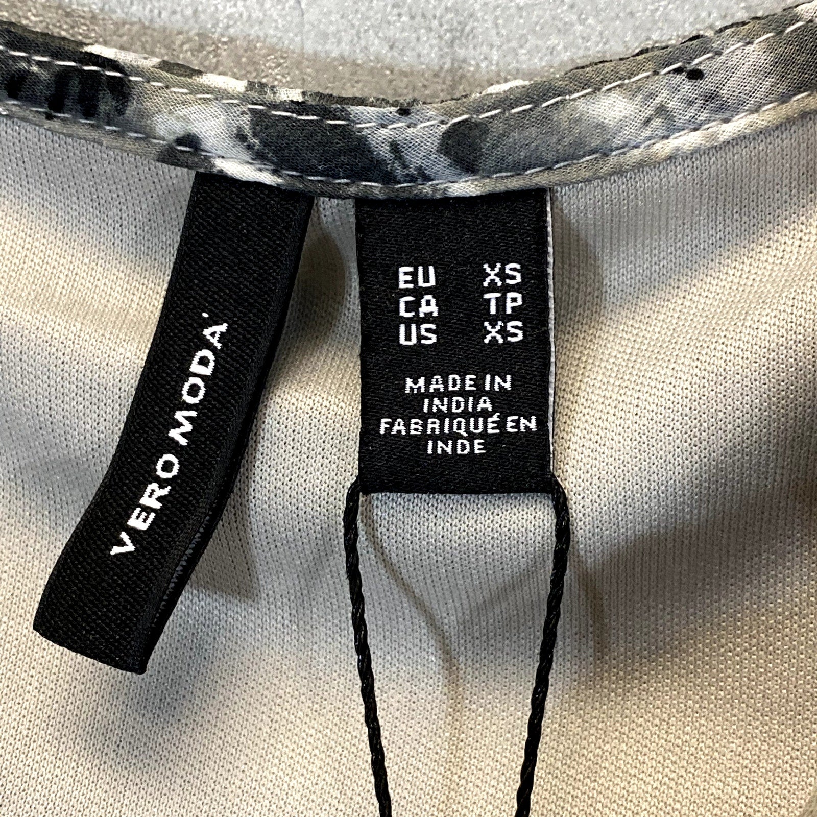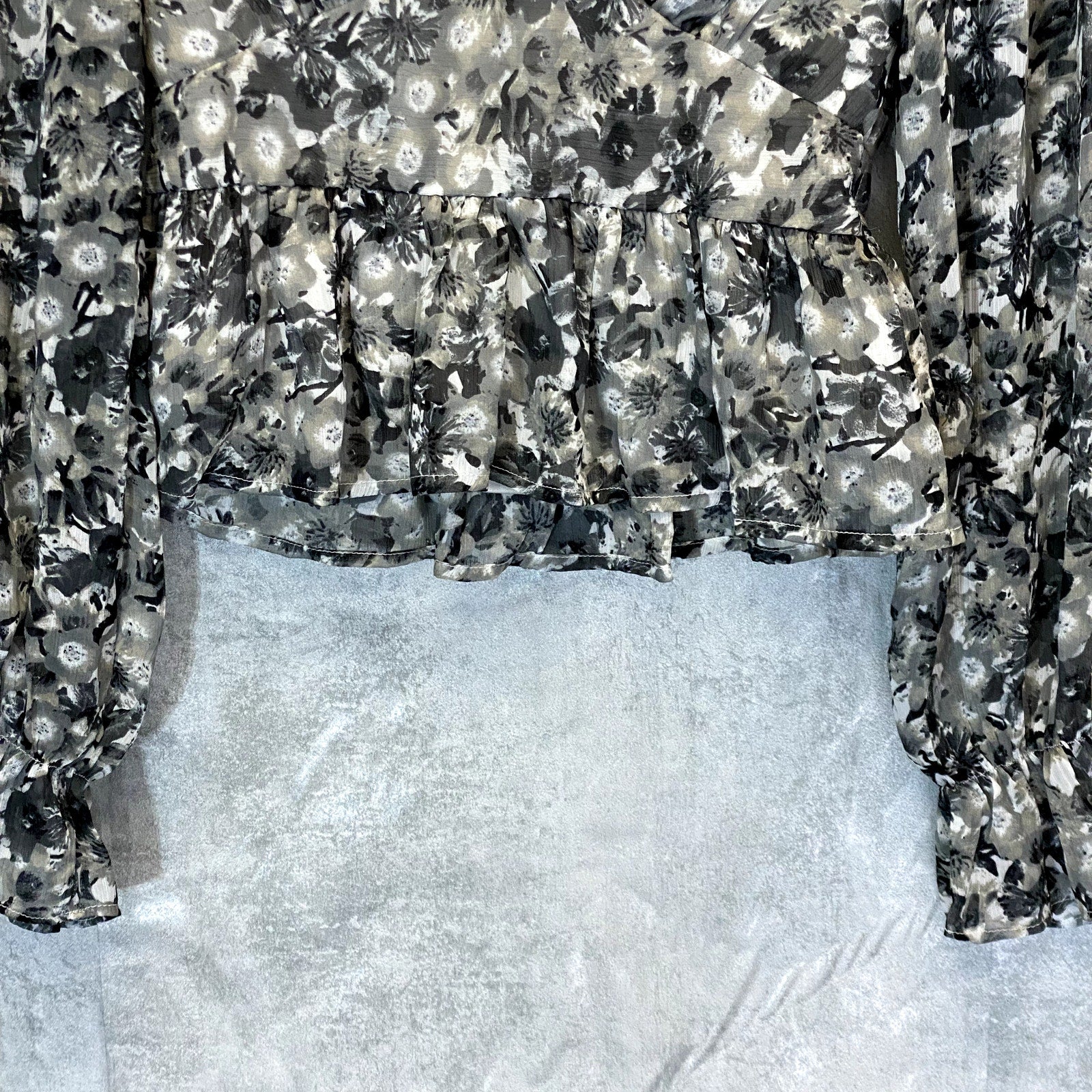 VERO MODA Women's Black Floral Print V-Neck Bell Sleeve Flutter Blouse SZ XS