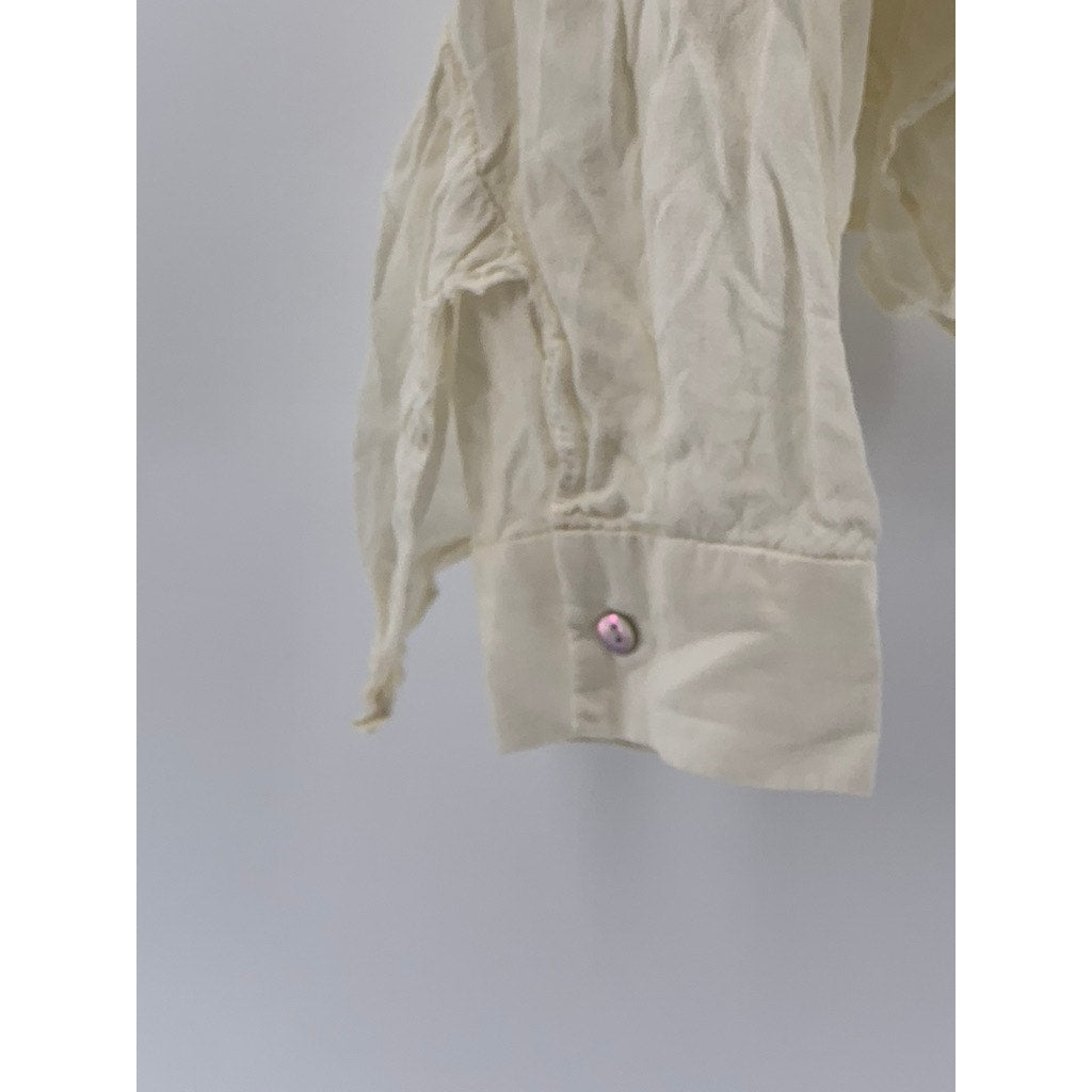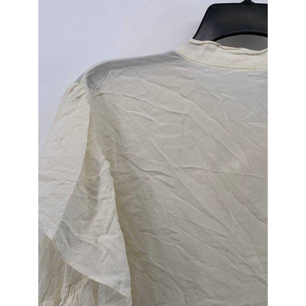 ZARA TRAFALUC COLLECTION Women's Off-White Tie-Neck Long Ruffle Sleeve Top SZ XL