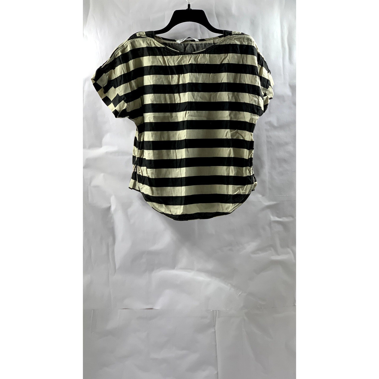 ZARA Women's Beige-Black Striped Boatneck Short Sleeve Top SZ S