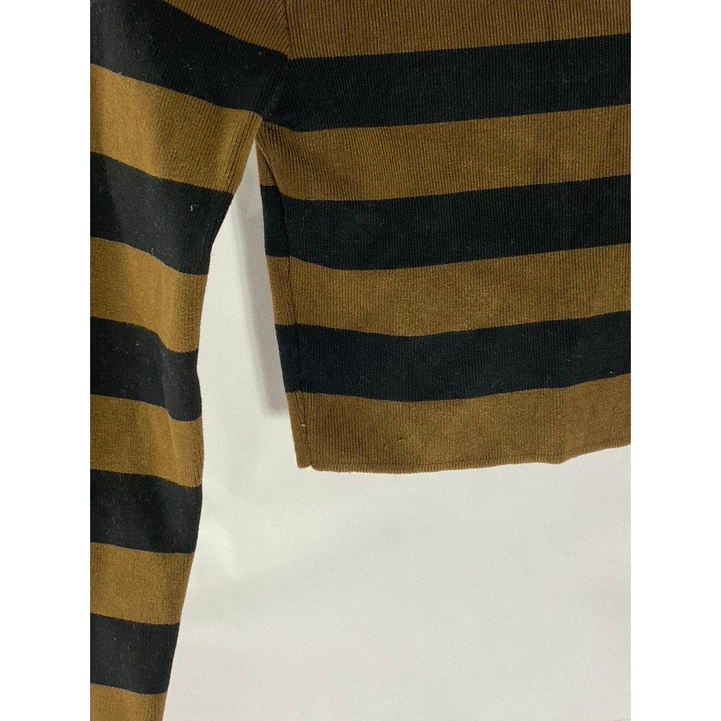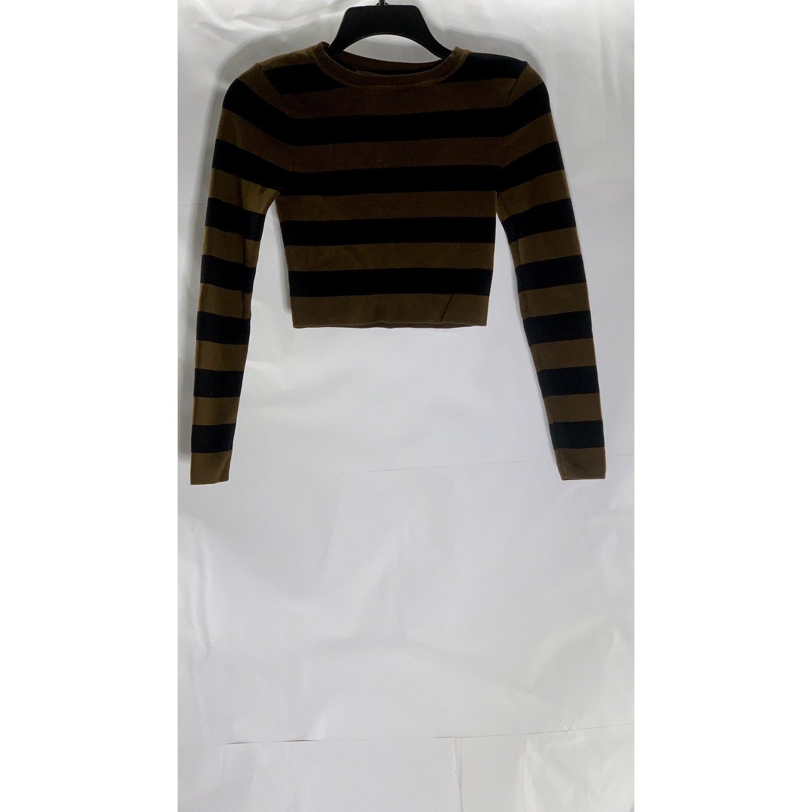 ZARA Women's Black/Brown Striped Knit Crewneck Long Sleeve Crop Top SZ S