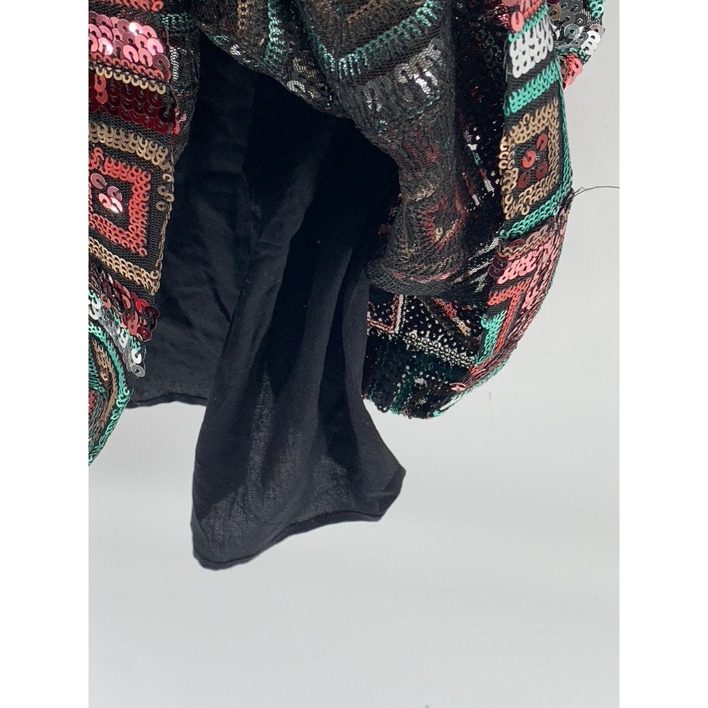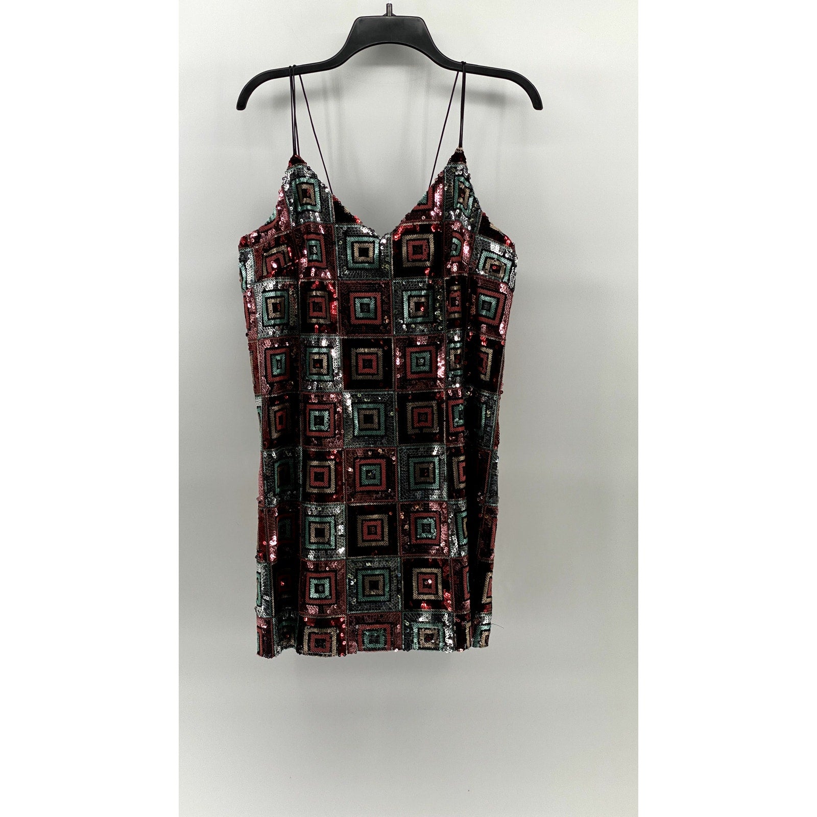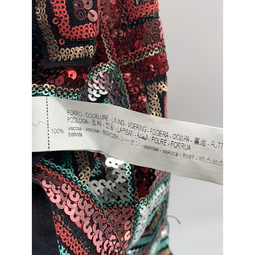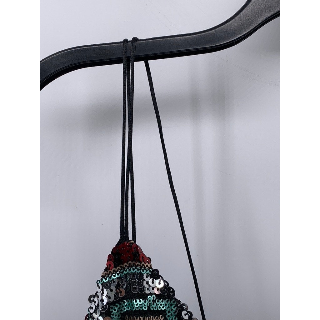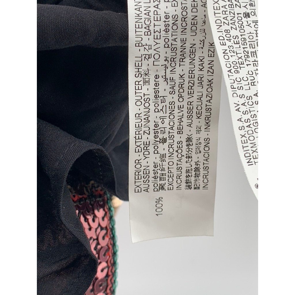 ZARA Women's Black-Multicolor Sequin V-Neck Double-Strap Mini Dress SZ L