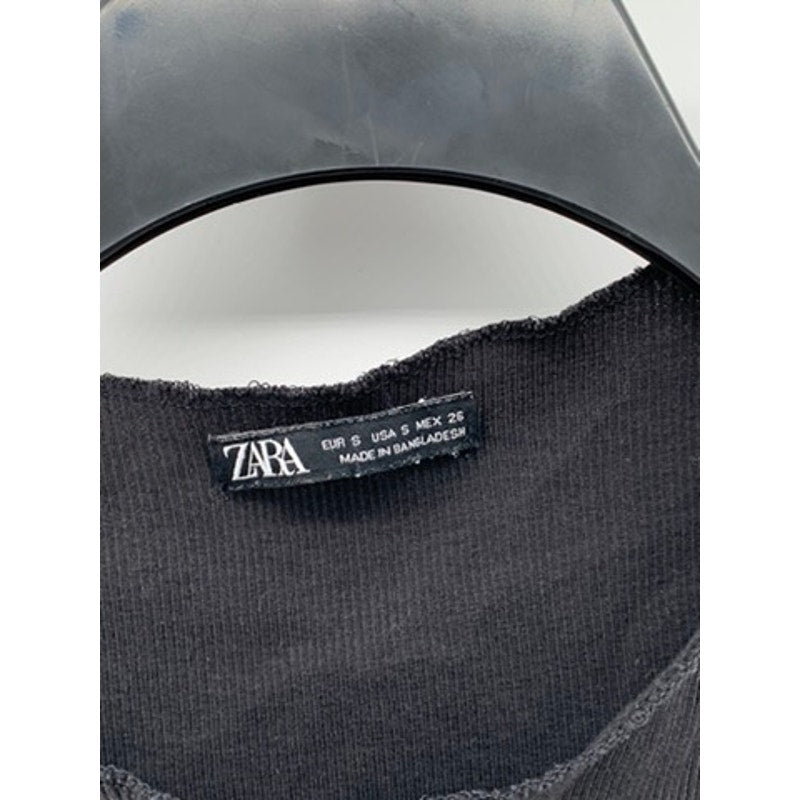 ZARA Women's Black Ribbed Scoop-Neck Raw-Trim Sleeveless Cropped Top SZ S