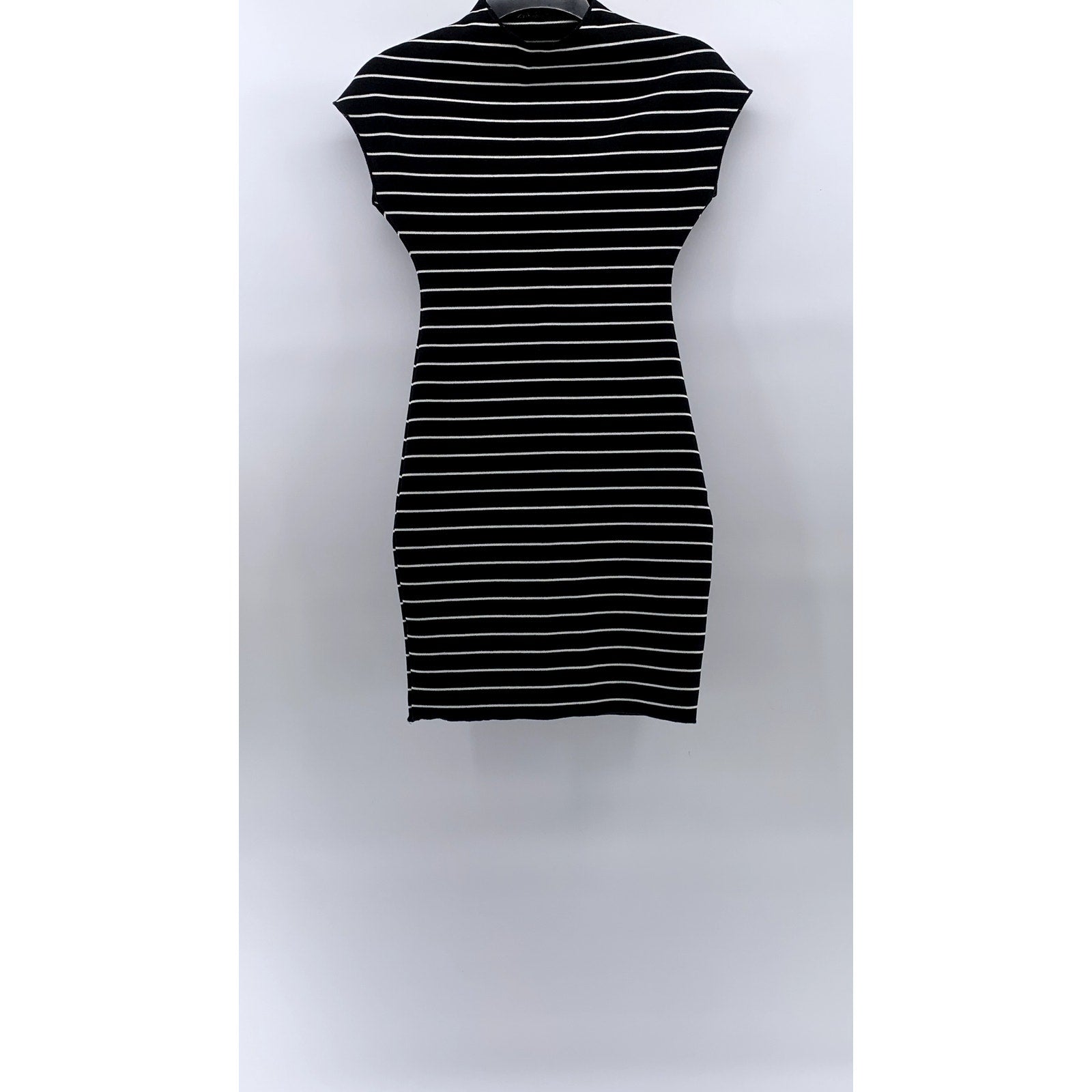 ZARA Women's Black-White Striped High-Neck Knit Short Sleeve Bodycon Mini Dress SZ S