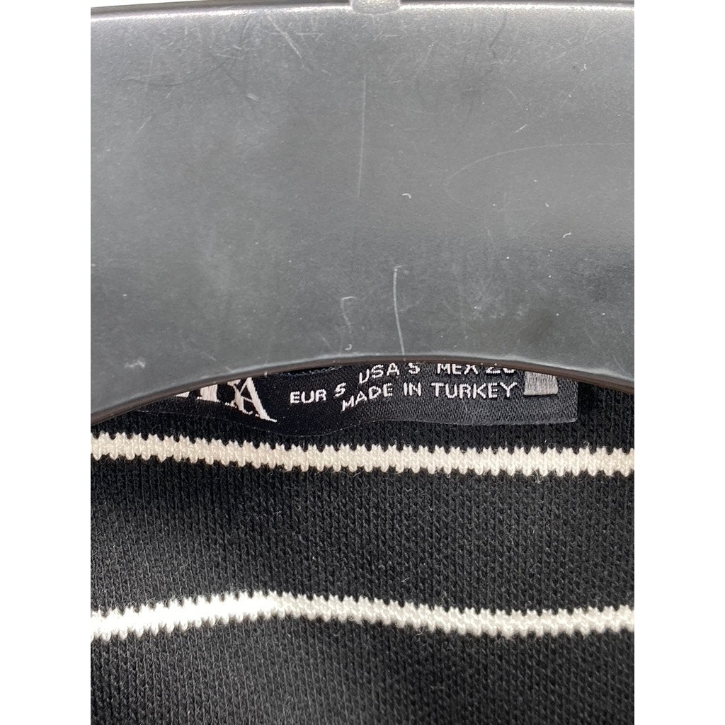 ZARA Women's Black-White Striped High-Neck Knit Short Sleeve Mini Dress SZ S