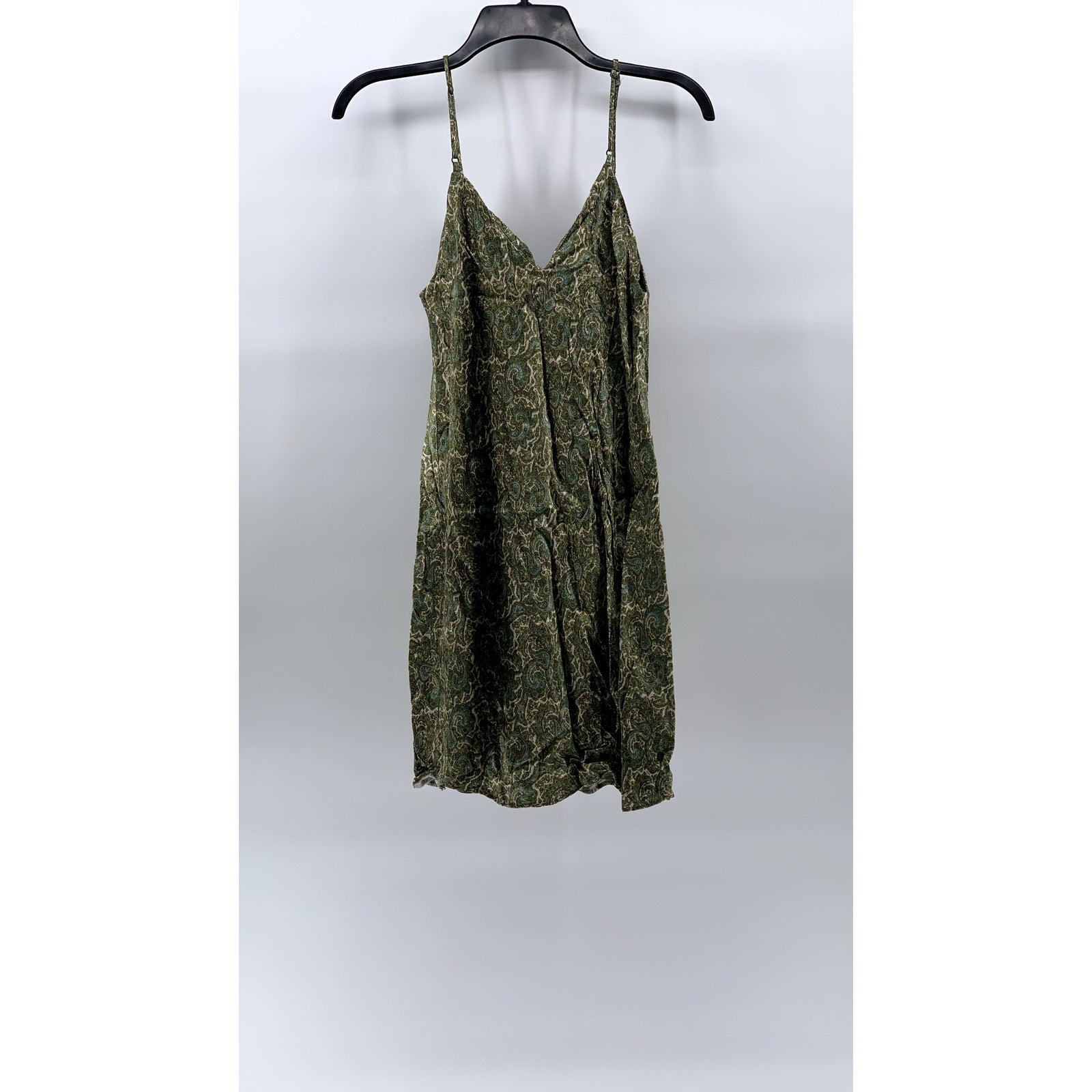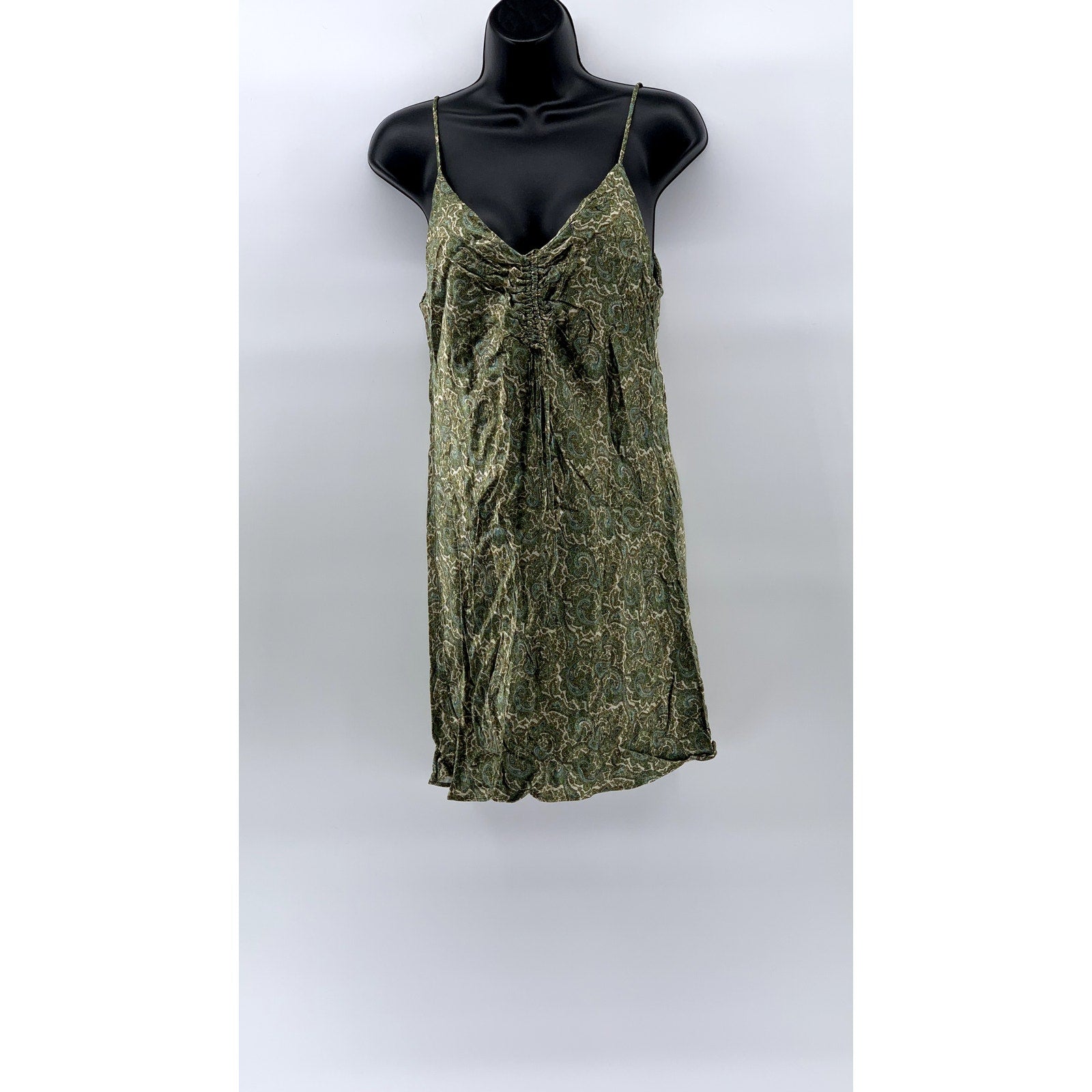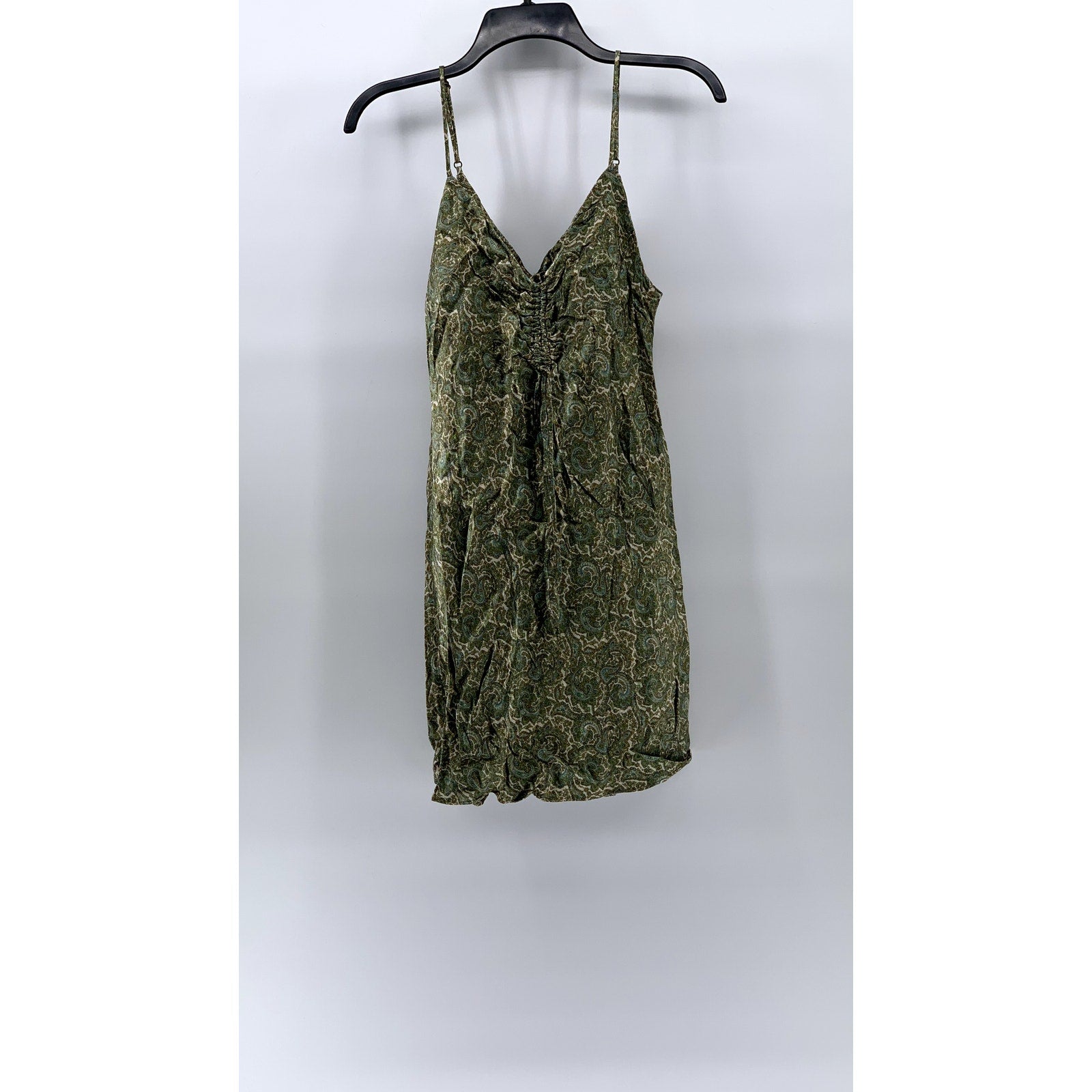 ZARA Women's Green Printed Ruched V-Neck Spaghetti Strap Mini Dress SZ M