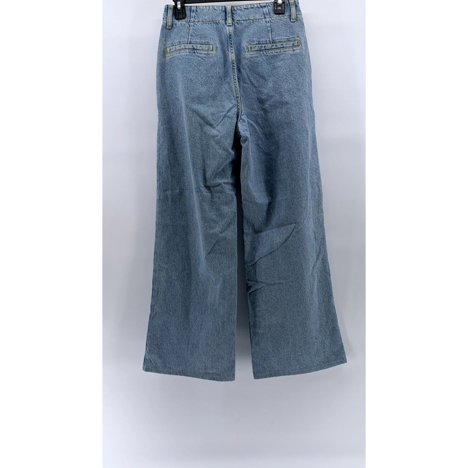 ZARA Women's Light Blue Wash Denim Button-Detail Pleated Relaxed-Fit Jean SZ 4