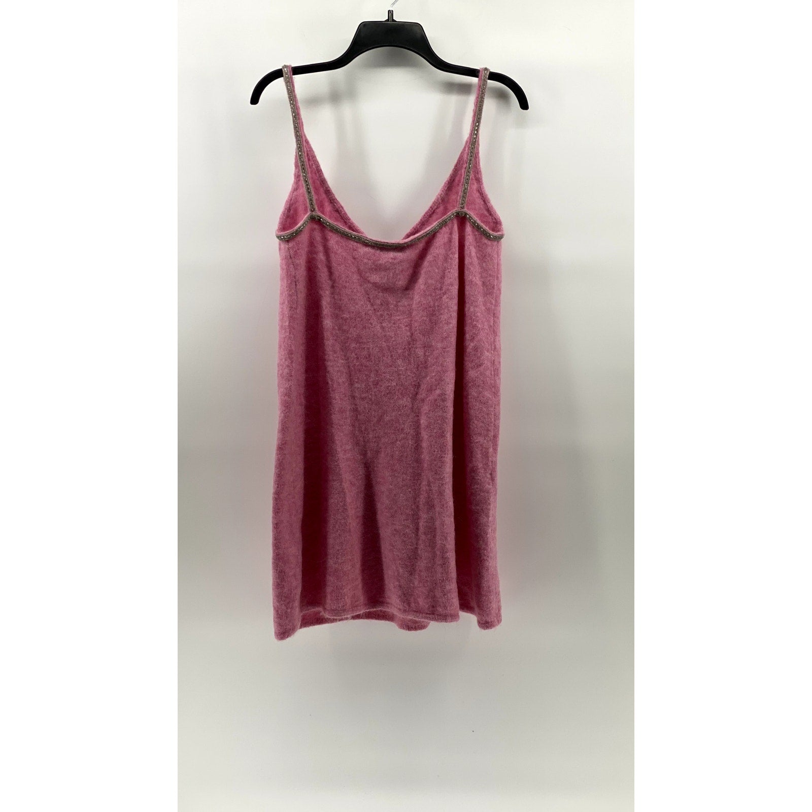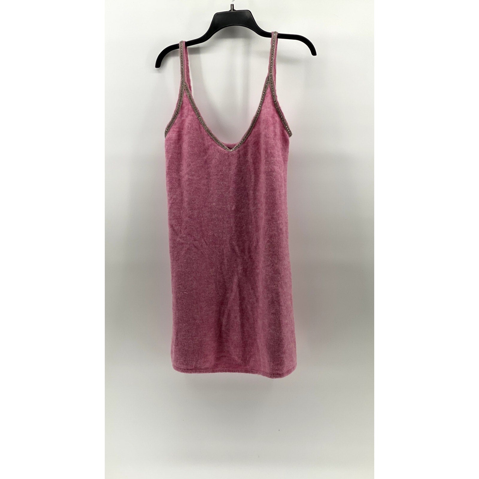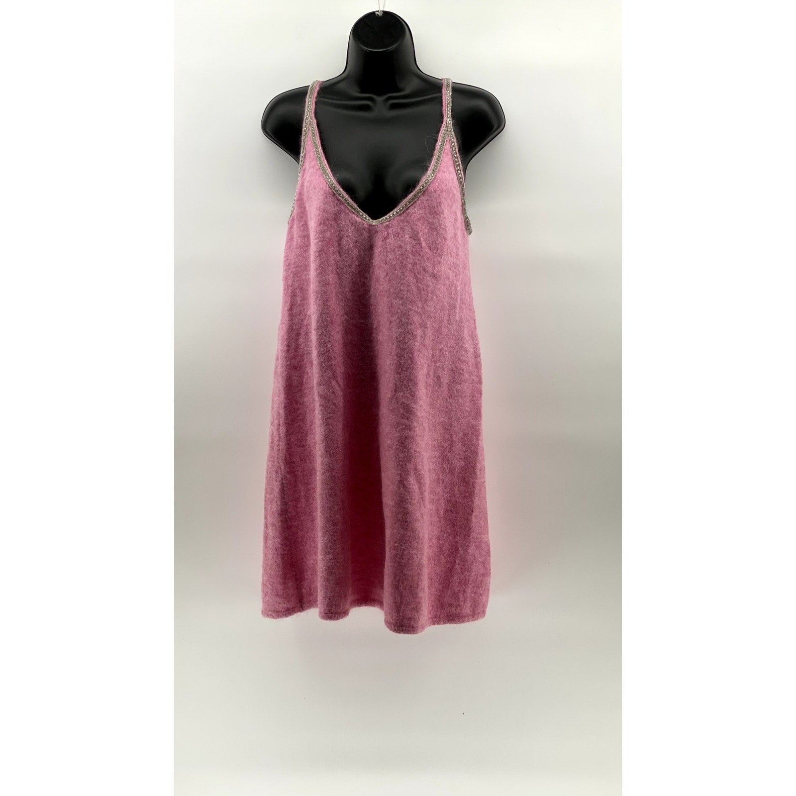 ZARA Women's Pink V-Neck Alpaca-Wool Blend Embellished A-Line Mini Dress SZ L