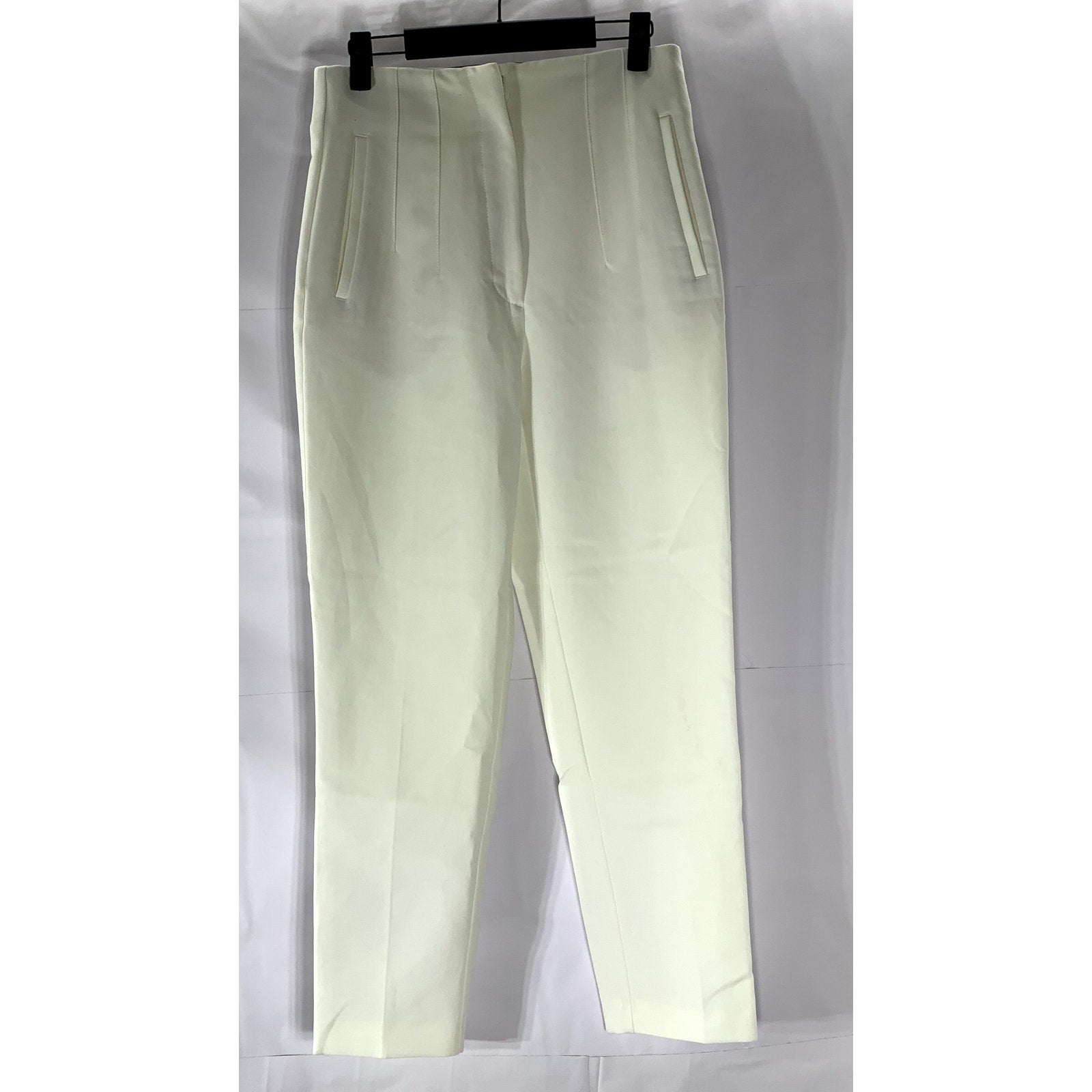 ZARA Women's White Regular Fit Slim-Leg Hook-Bar Dress Pant SZ M