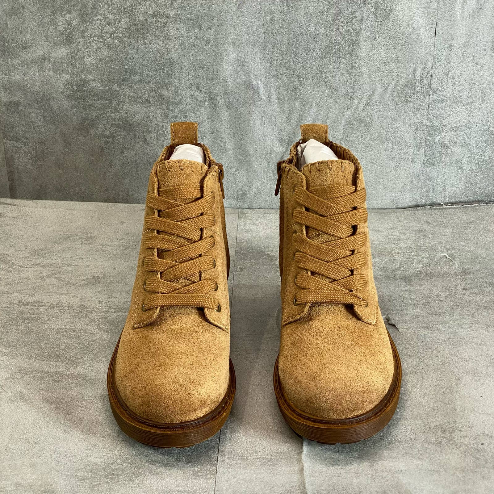 Lace-up style; side zip closure