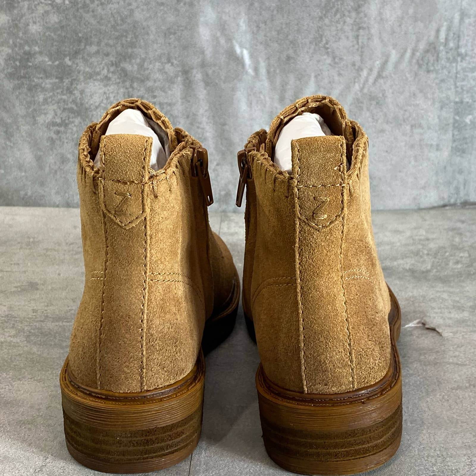 ZODIAC Women's Latte Leather Paisley Lace-Up Side Zip Ankle Boots SZ 5